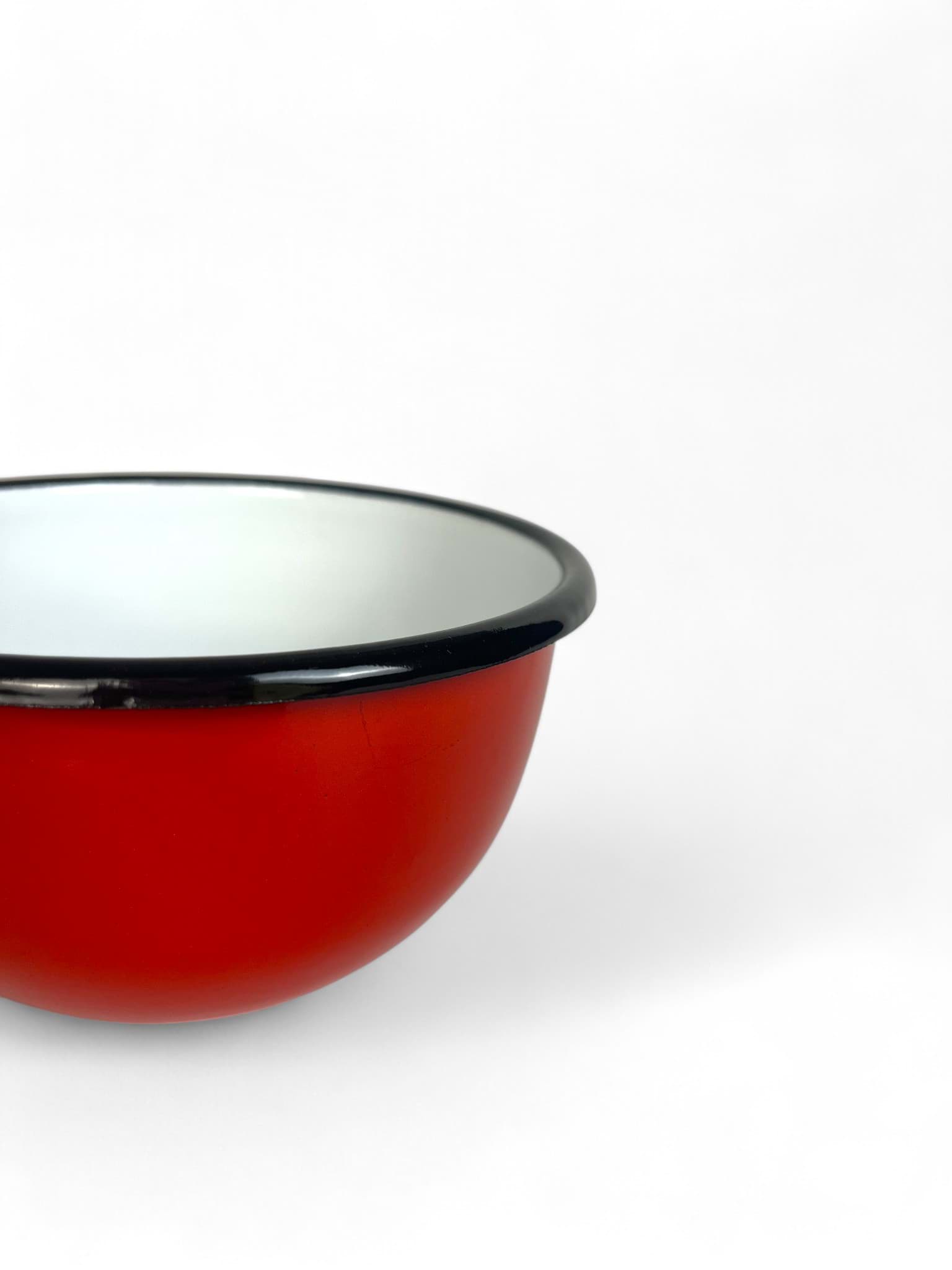 Datorită materialului emailat, bolul este ușor de curățat și întreținut, fiind rezistent la pete și mirosuri. Dimensiunea sa compactă îl face ușor de depozitat, economisind spațiu în bucătărie. Designul adânc permite utilizarea pentru cantități generoase de alimente sau lichide, fiind perfect pentru prepararea supelor, salatelor sau aluaturilor. Culoarea roșie aprinsă adaugă un plus de vitalitate și căldură oricărei încăperi.