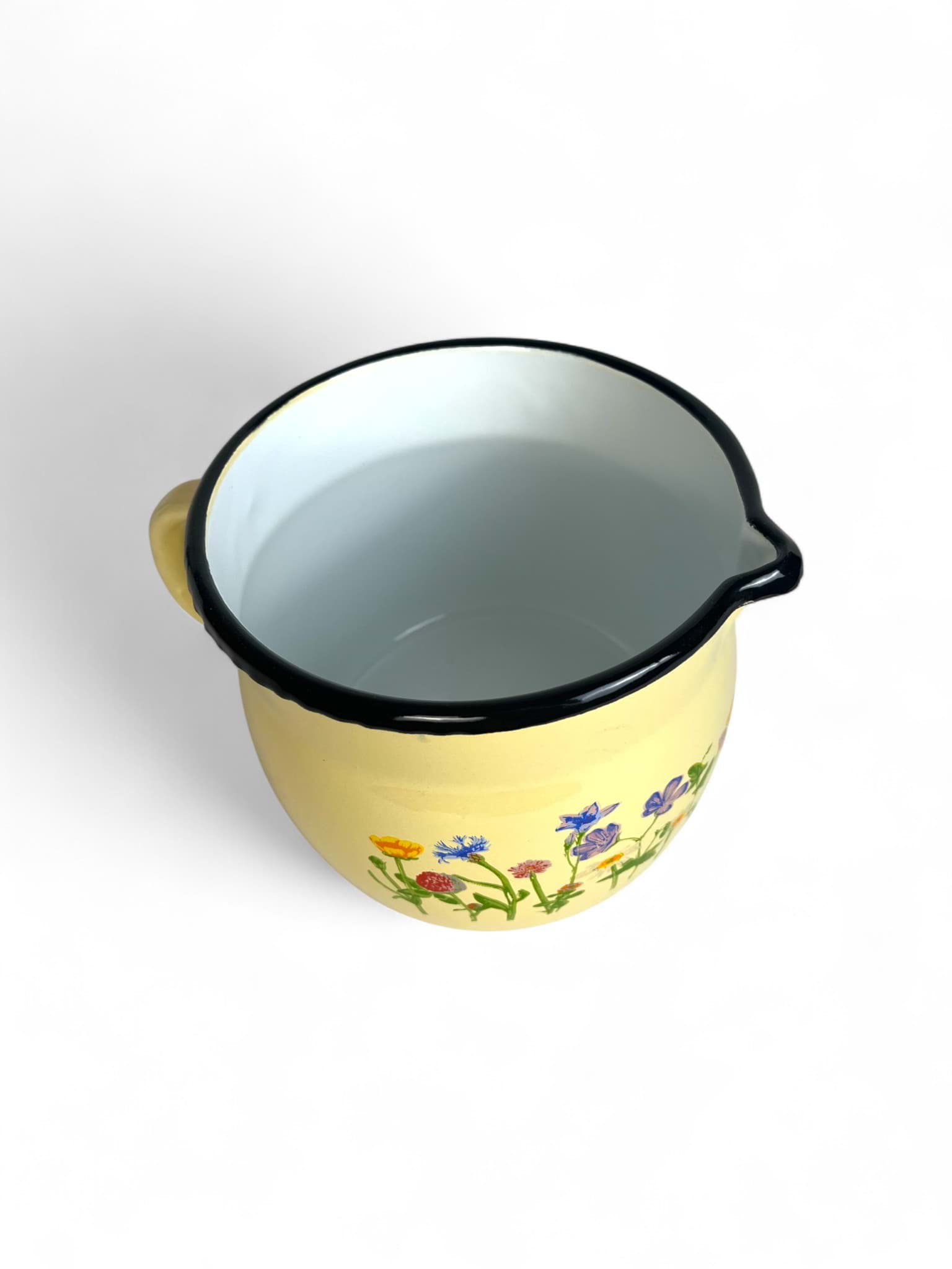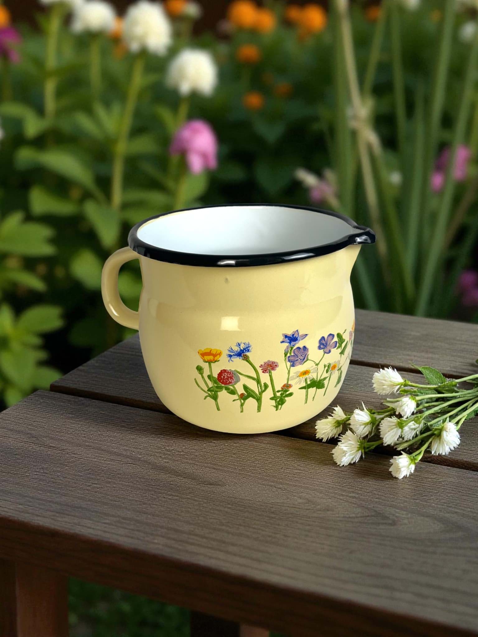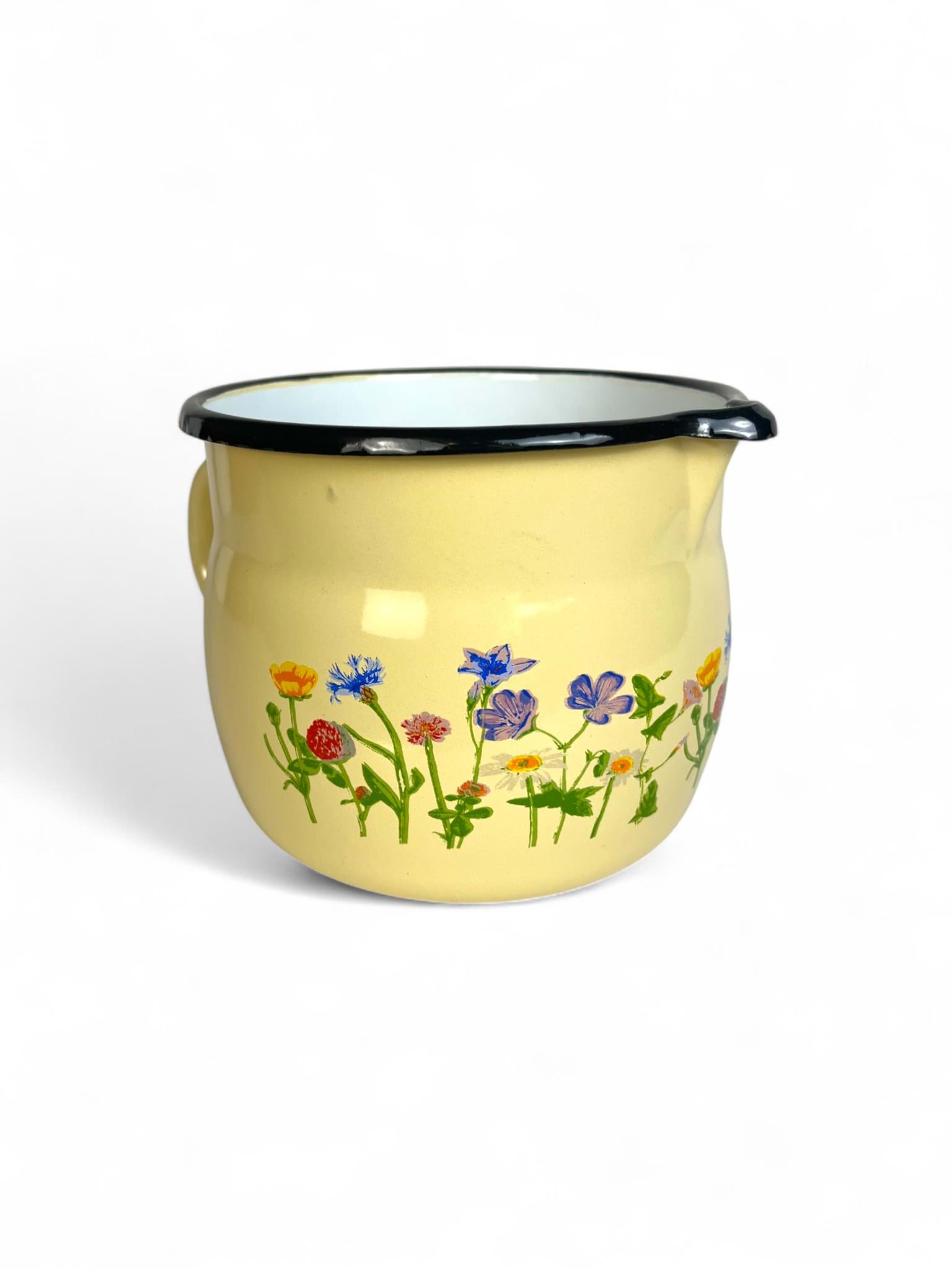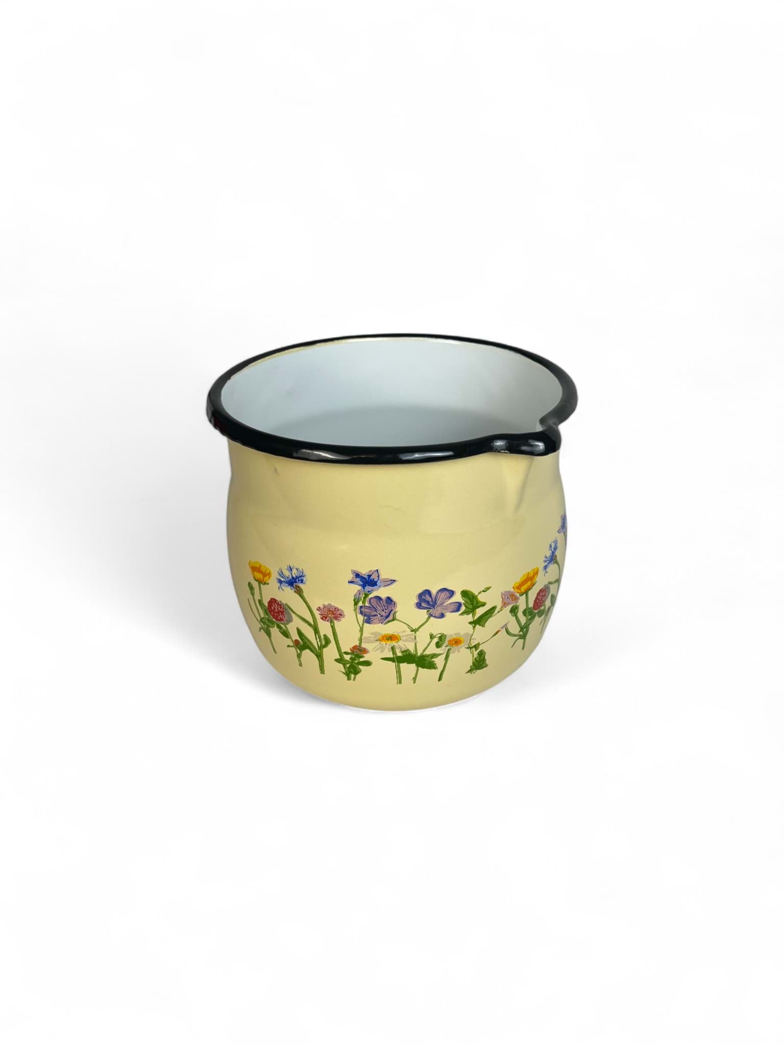 Această cană bombată emailată, cu un diametru de 14 cm, este ideală pentru utilizarea zilnică, aducând un plus de culoare și stil în bucătăria dumneavoastră. Designul său delicat cu floricele o face potrivită pentru servirea băuturilor calde sau reci, fiind perfectă pentru cafea, ceai sau apă. Emailul de calitate superioară asigură durabilitate și rezistență la uzură, menținând aspectul impecabil al cănii pentru o perioadă îndelungată. Forma bombată, împreună cu ciucul integrat, facilitează turnarea lichidelor fără scurgeri, în timp ce toarta ergonomică oferă o prindere sigură și confortabilă.