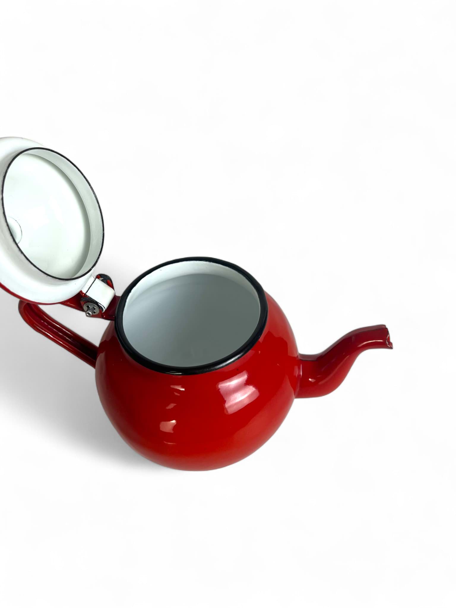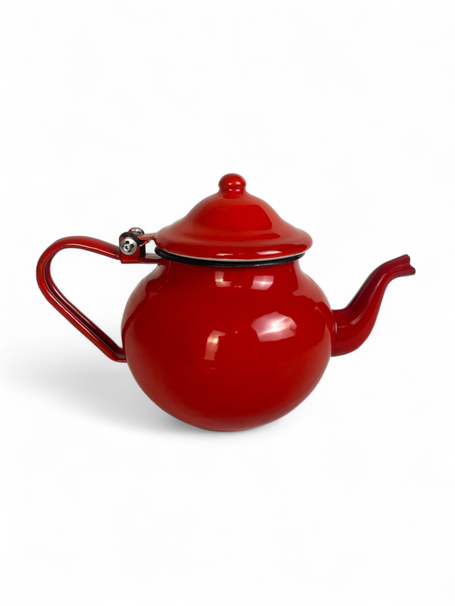 Acest ceainic emailat roșu, cu o capacitate de 0.7 litri și o formă bombată distinctivă, aduce un plus de culoare și stil oricărei bucătării. Designul său compact îl face ideal pentru prepararea unei cantități mici de ceai sau pentru o singură porție generoasă. Emailul de înaltă calitate asigură o încălzire uniformă și rapidă a apei, păstrând totodată gustul autentic al ceaiului tău preferat. Culoarea roșie vibrantă transformă acest ceainic într-un element decorativ atrăgător, perfect pentru a fi expus pe aragaz sau pe un raft.