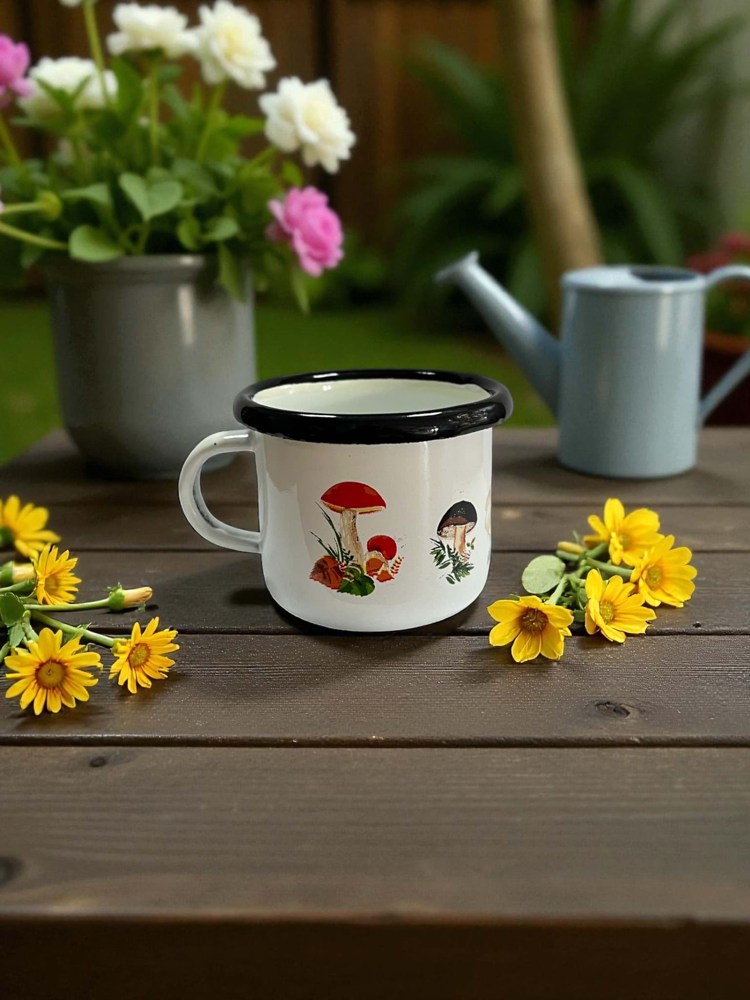 Un strop de nostalgie în bucătăria ta. Revivează amintirile copilăriei cu aceste ceșcuțe emailate, decorate cu ciuperci într-un stil vintage. Designul unic și culorile vii vor aduce un zâmbet pe fața oricui. Cu o capacitate de 95 ml, aceste ceșcuțe sunt perfecte pentru o porție de espresso sau pentru a completa un mic dejun sănătos.