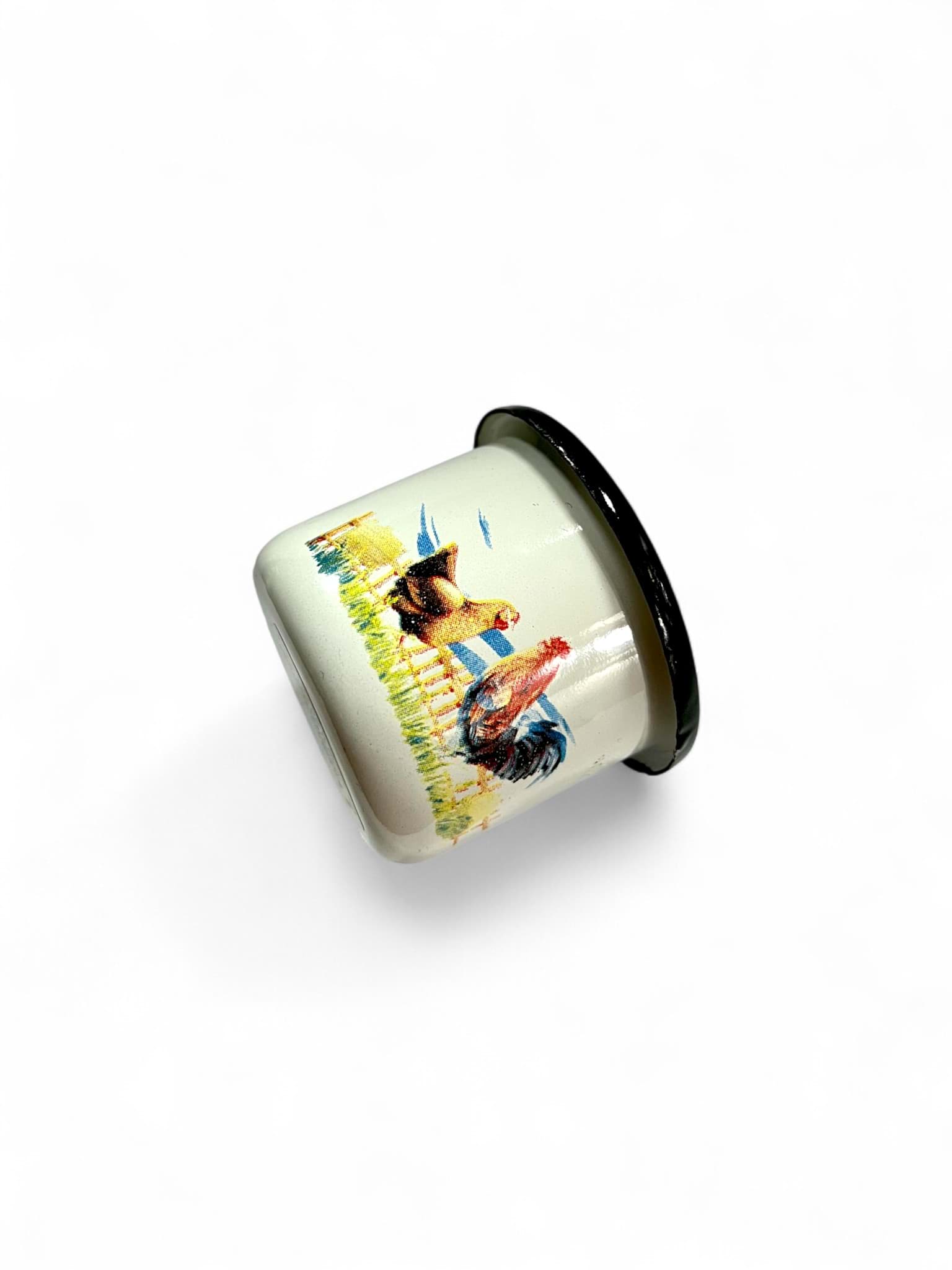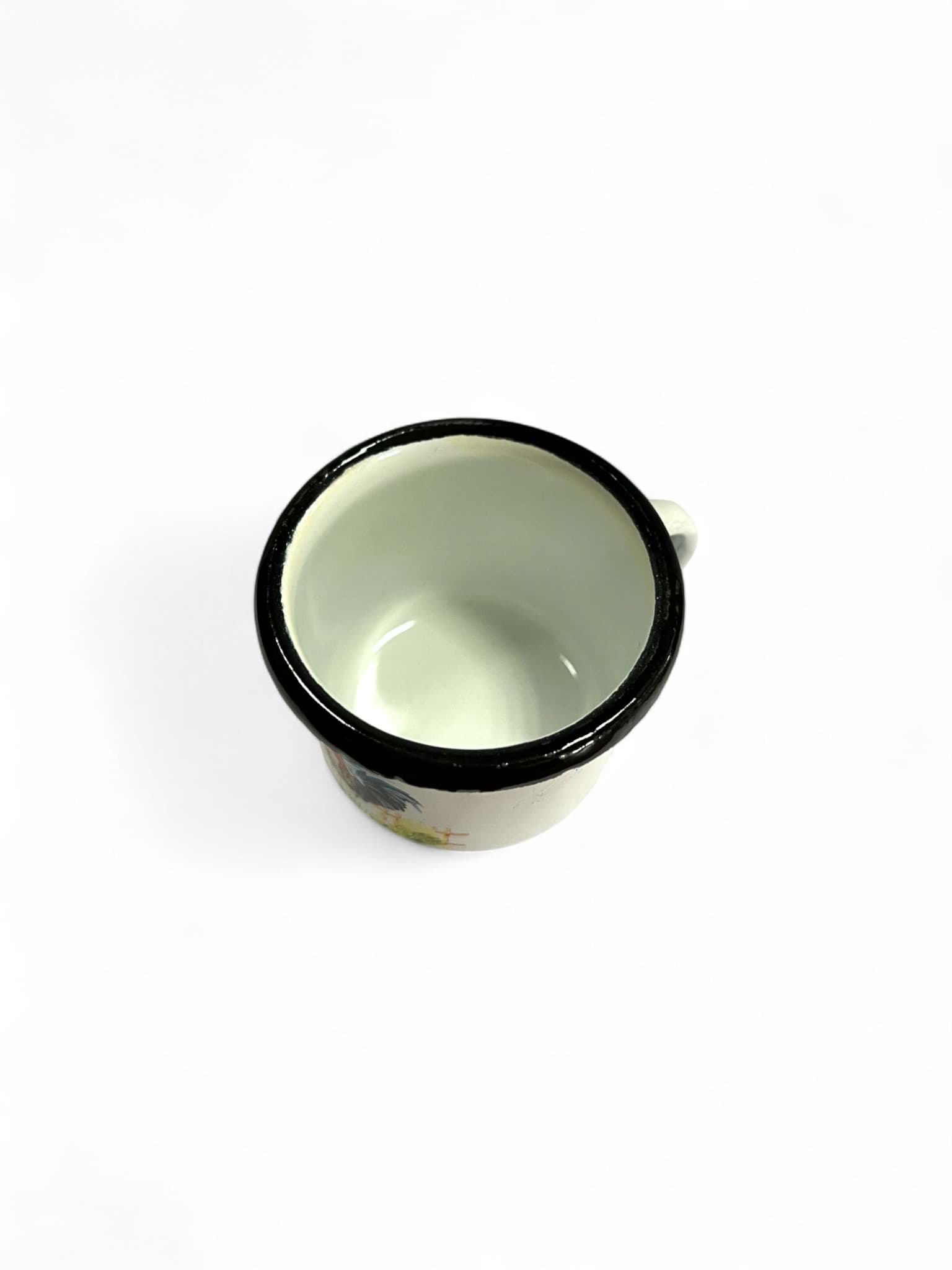 Realizată din materiale de calitate, ceșcuța emailată este ușor de curățat și întreținut. Suprafața emailată previne ruginirea și protejează împotriva petelor, asigurând o utilizare îndelungată. Este recomandată spălarea manuală pentru a păstra intact desenul cu cocoș și a menține aspectul vibrant al culorilor. Dimensiunile compacte o fac ușor de manevrat și depozitat, fiind un accesoriu practic și estetic pentru orice iubitor de cafea sau ceai.