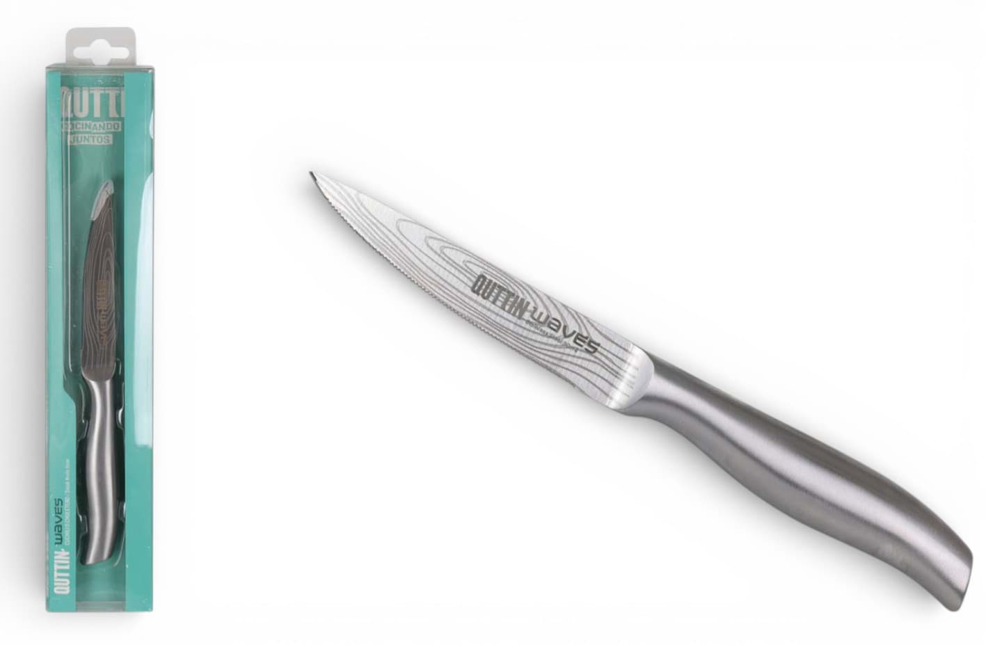 Cuțitul pentru carne steak QUTTIN Waves, cu lama sa de 11 cm, este proiectat special pentru a oferi o experiență superioară în tăierea fripturilor. Fie că pregătiți o cină festivă sau un prânz rapid, acest cuțit vă asigură o tăiere precisă și fără efort a cărnii. Designul său ergonomic și echilibrat permite o manevrare confortabilă și sigură, reducând oboseala chiar și în timpul utilizării prelungite. Fabricat din materiale de înaltă calitate, cuțitul QUTTIN Waves este rezistent și durabil, menținându-și ascuțimea chiar și după utilizări repetate.