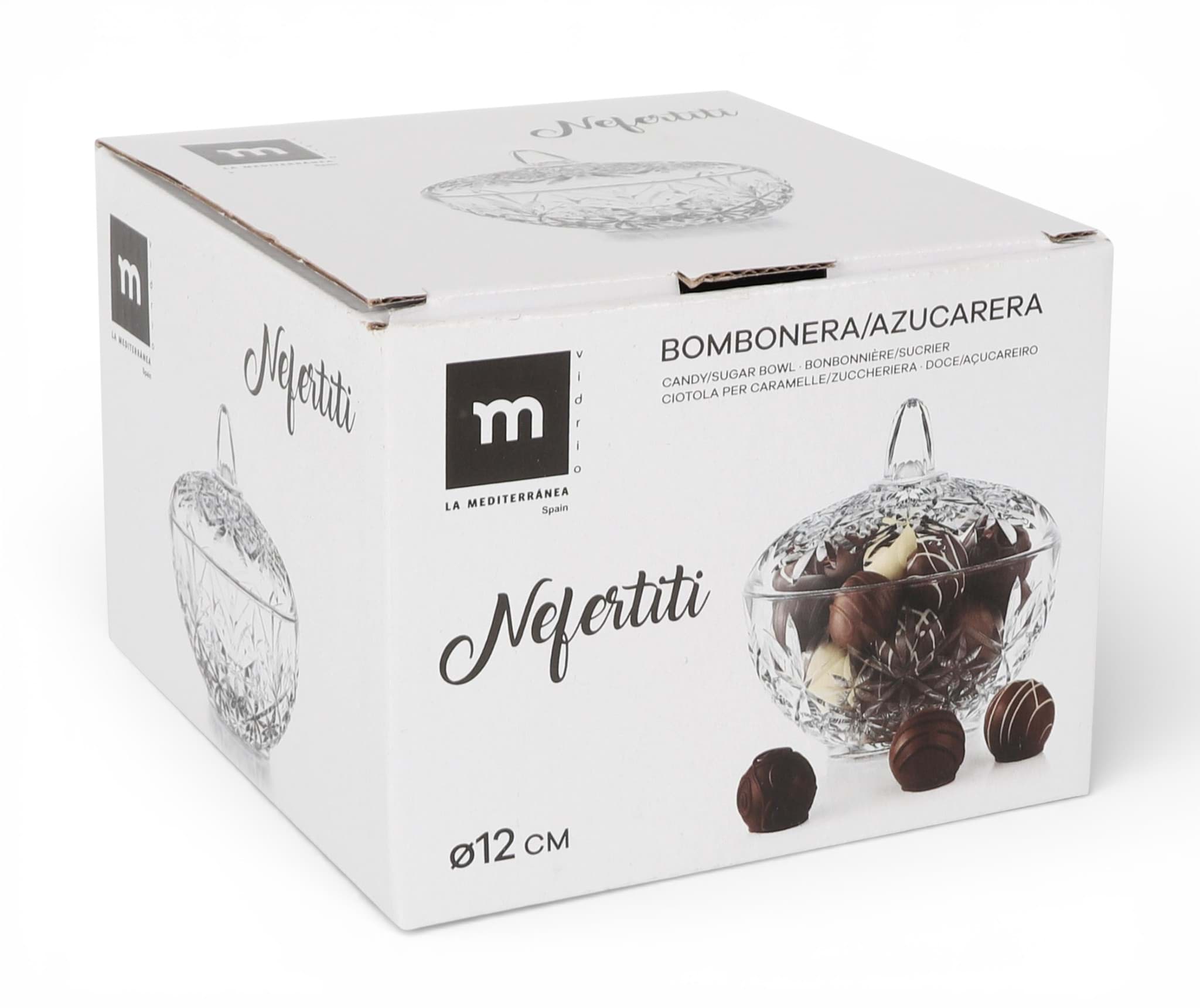 The 12 cm NEFERTITI bonbonniere is a decorative and functional object, ideal for adding a touch of elegance to any table or buffet. Its refined design makes it suitable for serving fine sweets, sugar cubes, or other small delicacies. Its compact shape makes it easy to integrate into any decor, from classic to modern. This bonbonniere is not just a container, but also a decorative element that catches the eye and complements the overall aesthetics of the space.