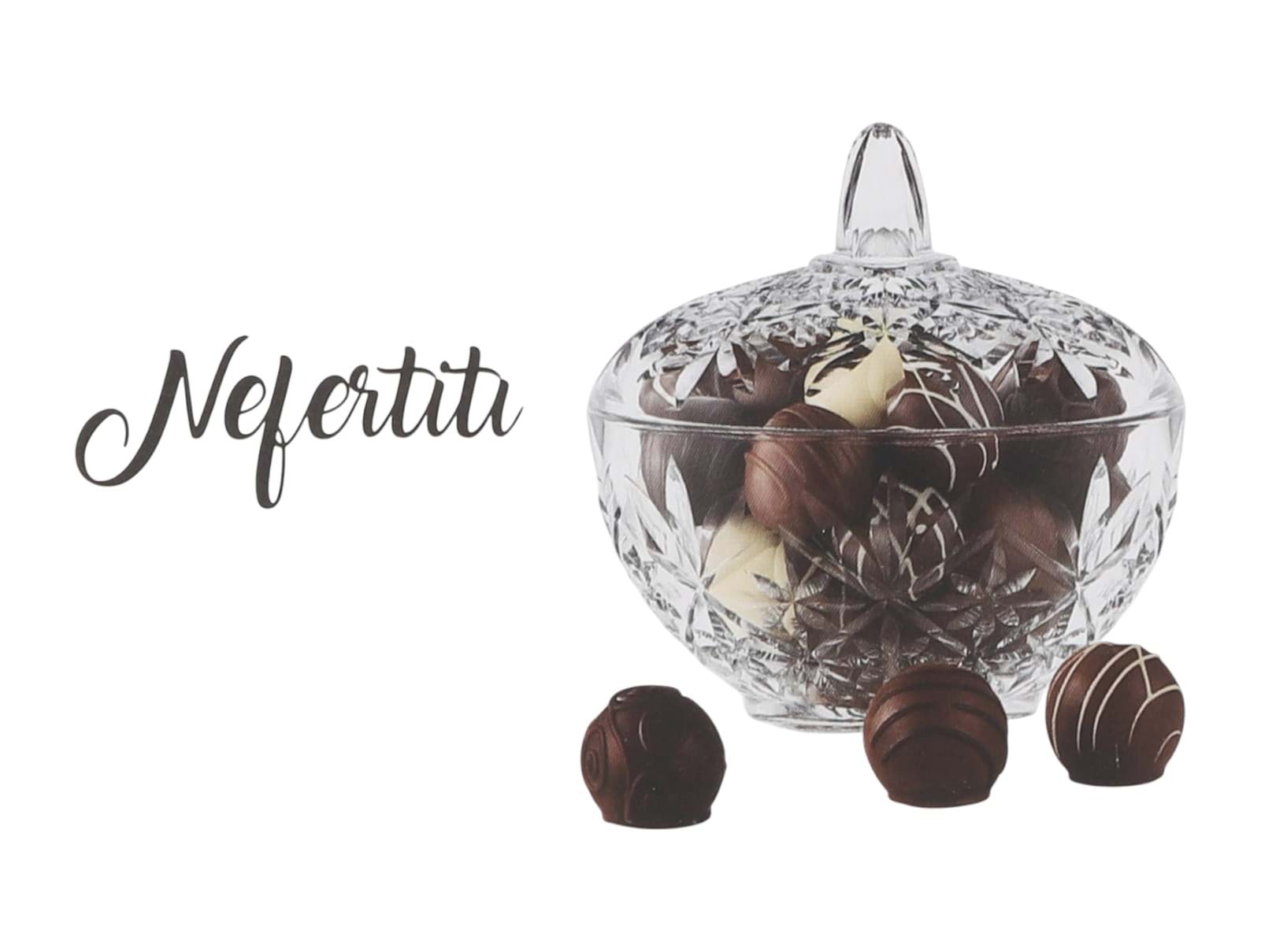 The 12 cm size of the bonbonniere makes it ideal for placing on a coffee table, desk, or in a display cabinet. It can be used for personal use as well as to impress guests. The materials from which it is made ensure durability and ease of maintenance, allowing you to enjoy its beauty and functionality for a long time. The NEFERTITI bonbonniere is, therefore, an inspired choice for those who appreciate details and want to add a touch of style to their daily lives.