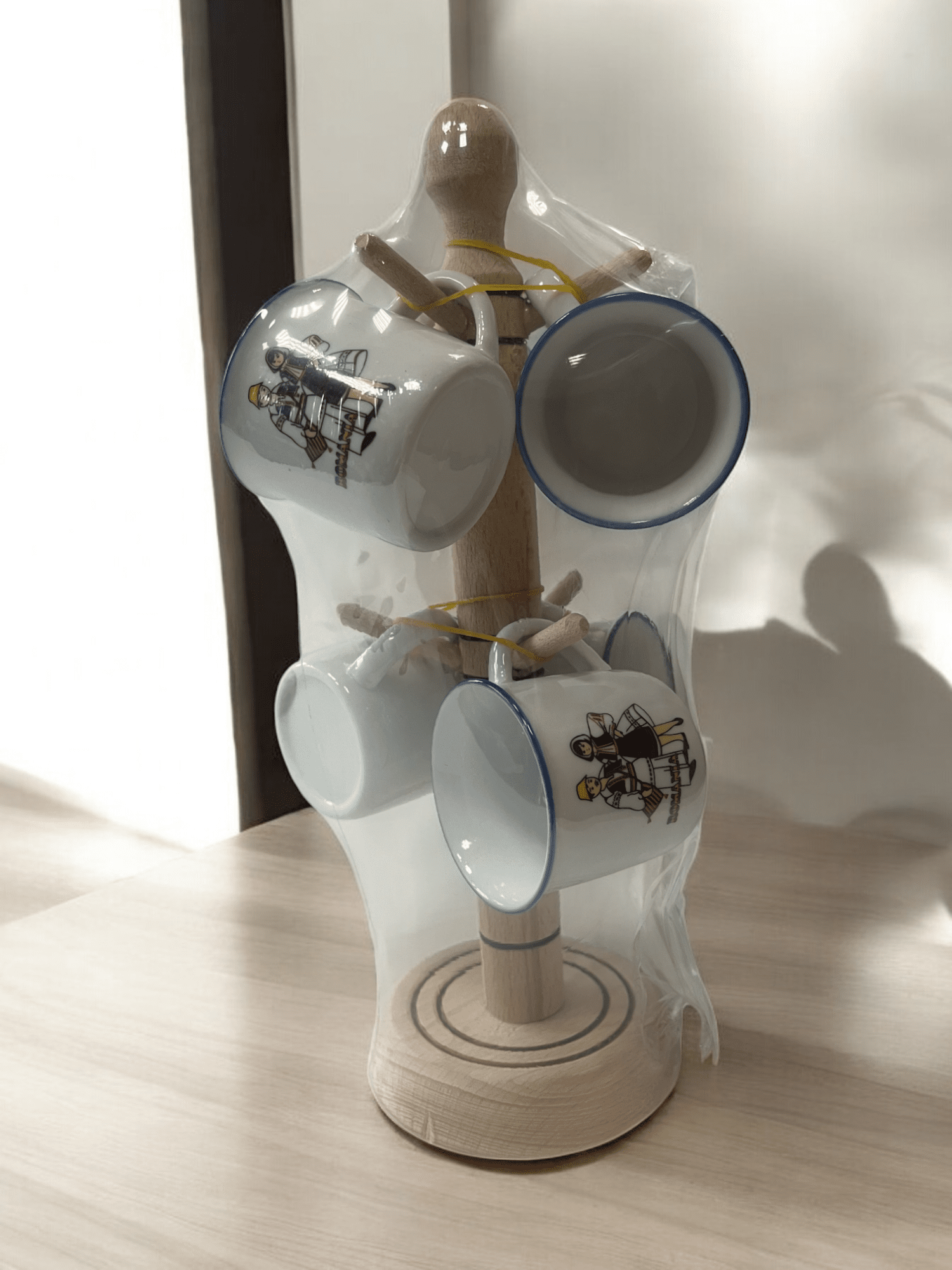 This set of 6 coffee cups brings authentic charm to any table, with each cup featuring a traditional design that evokes elegance and culture. The wooden vertical stand perfectly complements the design, offering both a rustic look and a practical storage solution. Ideal for saving space and displaying the cups attractively, this set is perfect for daily use or adding style to gatherings with friends. It also makes a unique gift for coffee and tradition lovers.