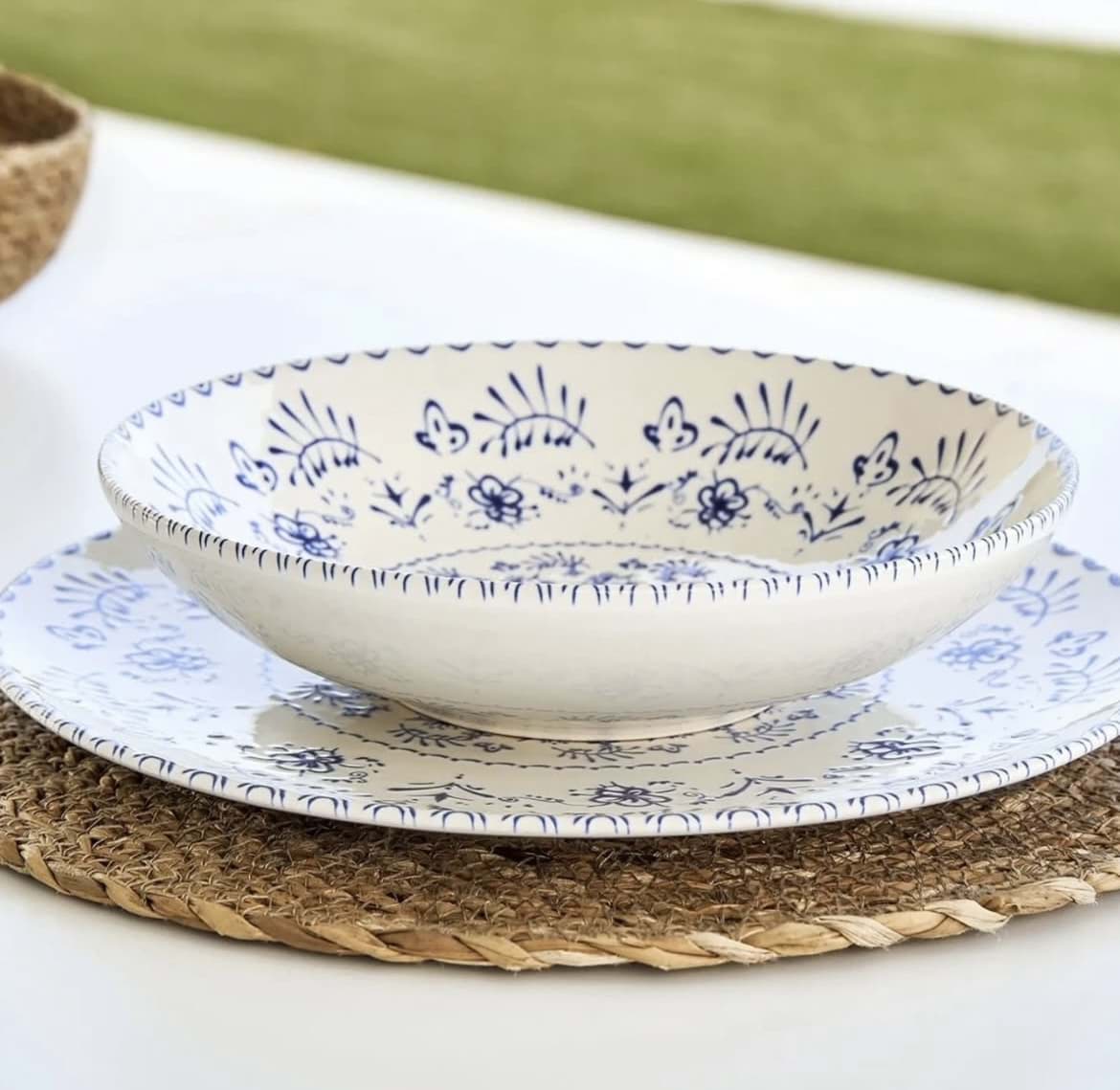 Realizată într-o nuanță clasică de alb, farfuria este evidențiată de un decor floral albastru pe margini, ce aduce un aer proaspăt și rafinat oricărei mese. Se potrivește perfect atât într-un decor modern, cât și într-o bucătărie cu accente rustice.