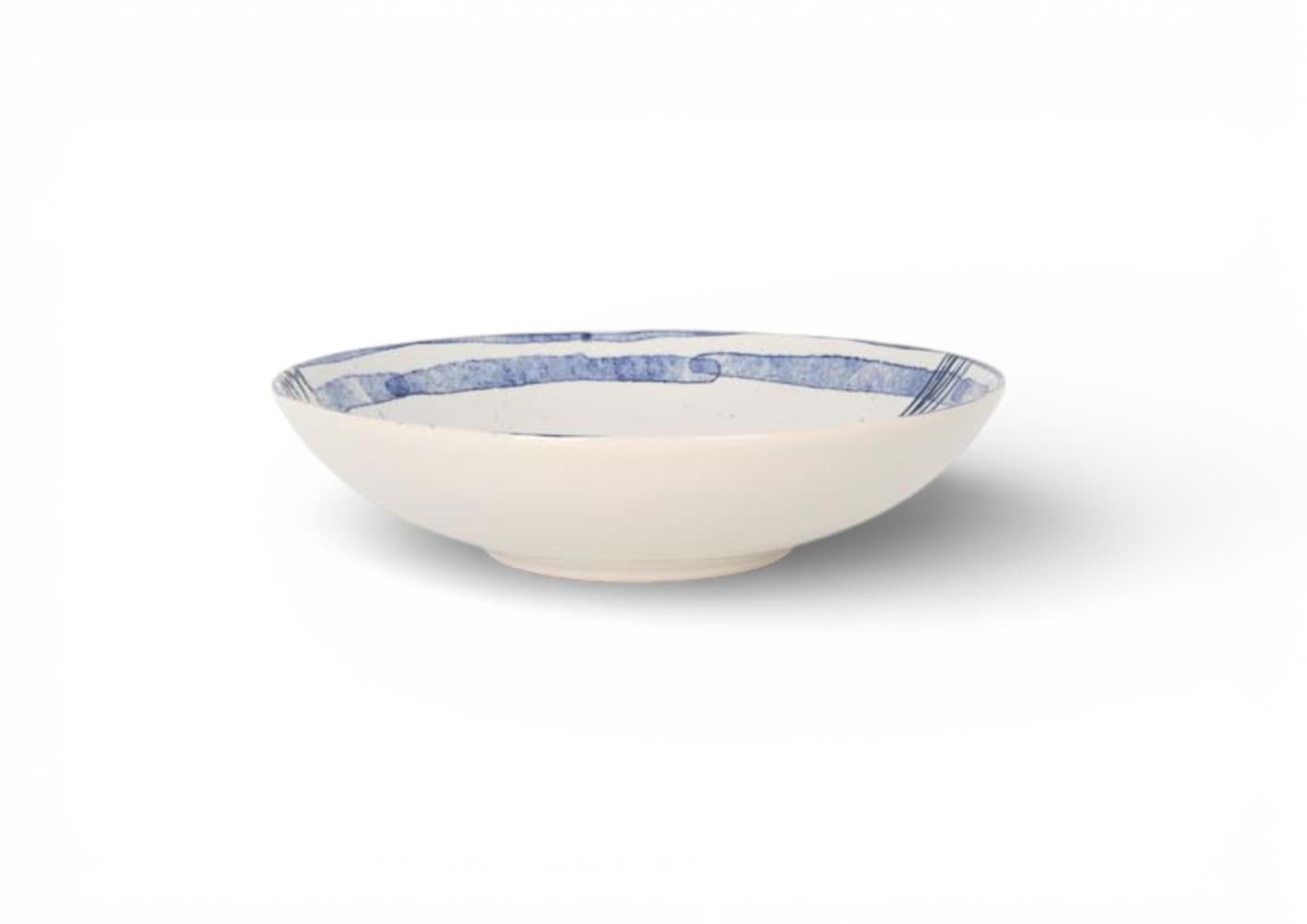 Farfurie adâncă 21 cm, model Irys, alb cu dungi albastre - La Mediterranea