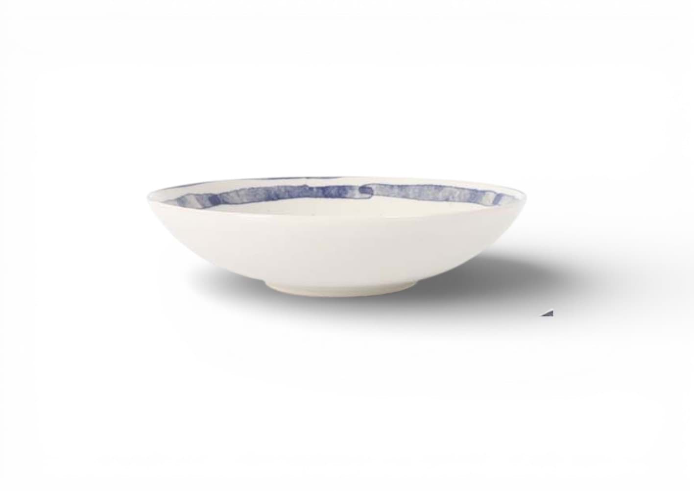 Farfurie adâncă 21 cm, model Irys, alb cu dungi albastre - La Mediterranea