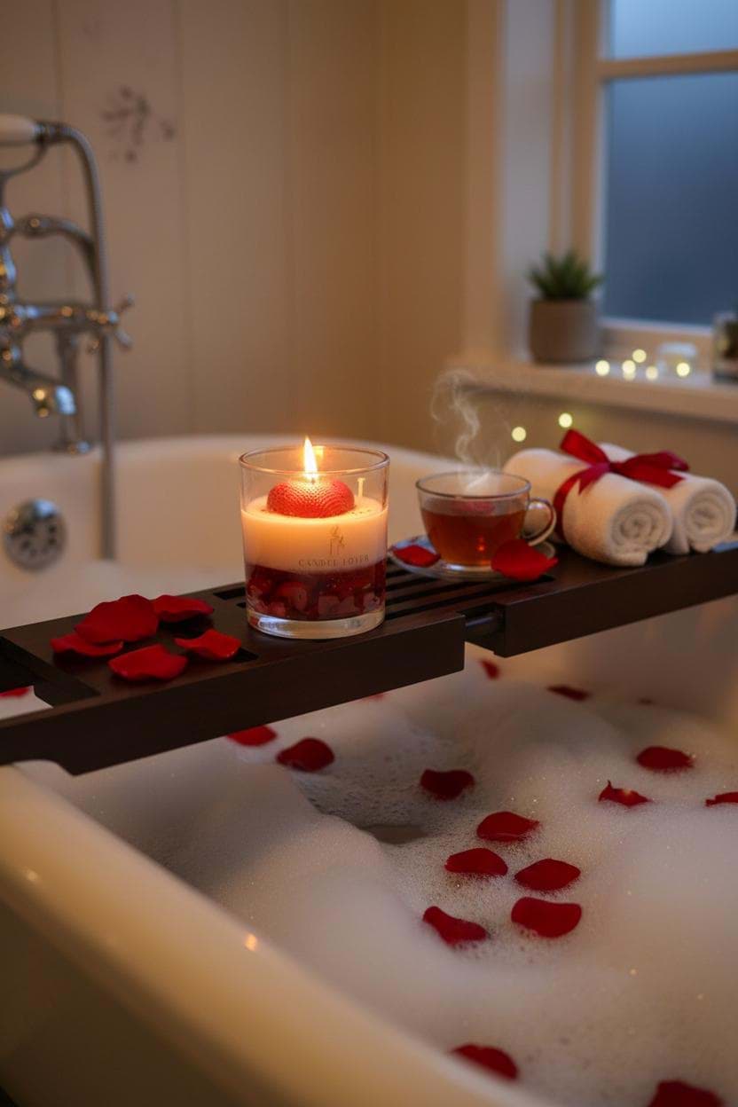 Cele două inimi roșii decorative din partea superioară transformă lumânarea într-un obiect decorativ ideal pentru decor interior, seri romantice sau cadouri speciale. Vasul din sticlă transparentă completează designul premium.