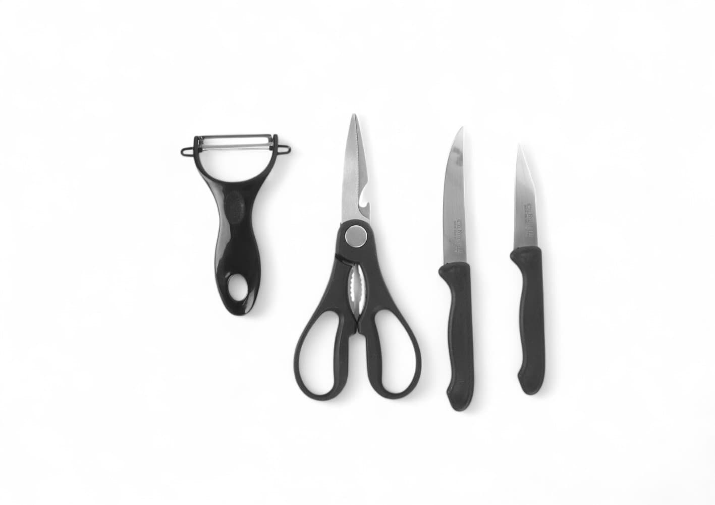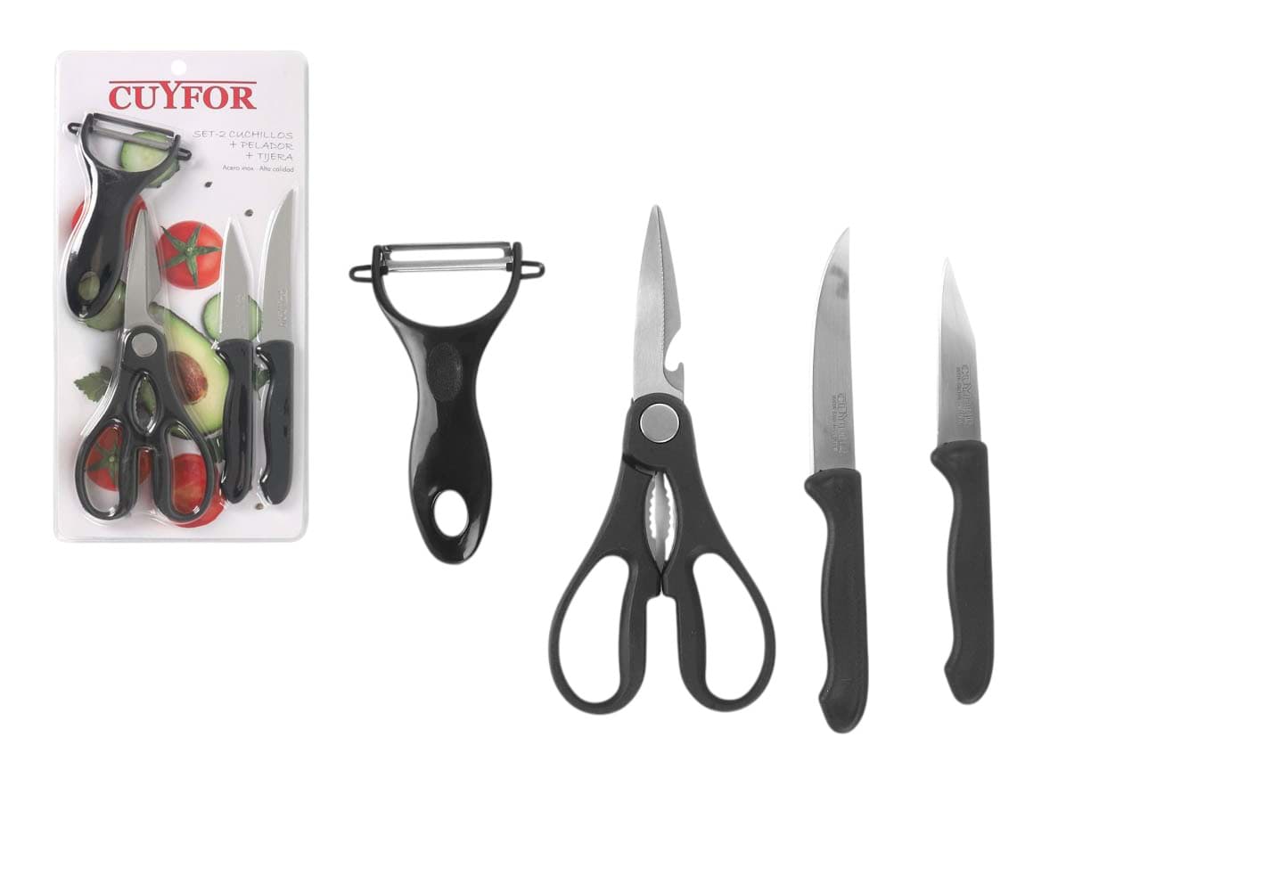 Setul Cuyfor este soluția ideală pentru a avea la îndemână instrumentele de bază necesare în orice bucătărie. Acesta include două cuțite de diferite dimensiuni, perfecte pentru o gamă largă de sarcini, de la tăierea legumelor și fructelor, până la tranșarea cărnii. Foarfeca inclusă este robustă și multifuncțională, potrivită pentru tăierea ambalajelor, a ierburilor aromatice sau chiar pentru porționarea cărnii de pasăre. Nu în ultimul rând, curățătorul de legume completează setul, facilitând pregătirea rapidă și eficientă a ingredientelor pentru diverse rețete.