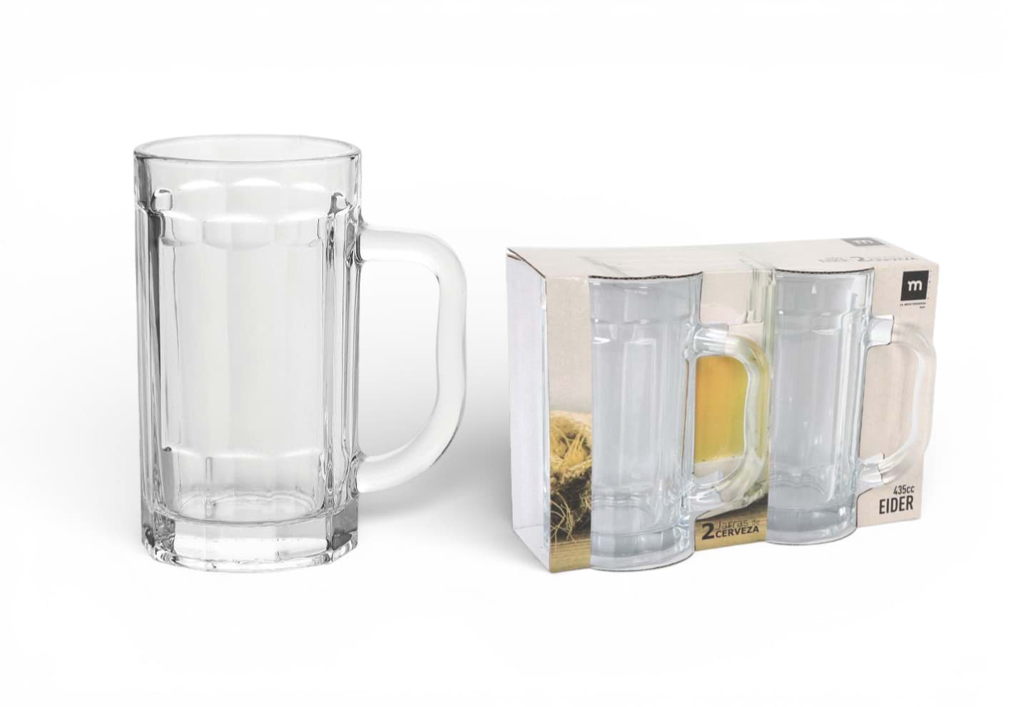 Acest set include două halbe de bere EIDER, fiecare având o capacitate de 435 ml. Aceste halbe sunt perfecte pentru a savura berea preferată alături de prieteni sau familie. Designul lor clasic și robust le face ideale pentru utilizare frecventă, aducând un plus de eleganță oricărei ocazii. Materialul de calitate superioară asigură o durabilitate îndelungată, permițându-vă să vă bucurați de experiența berii la maximum.