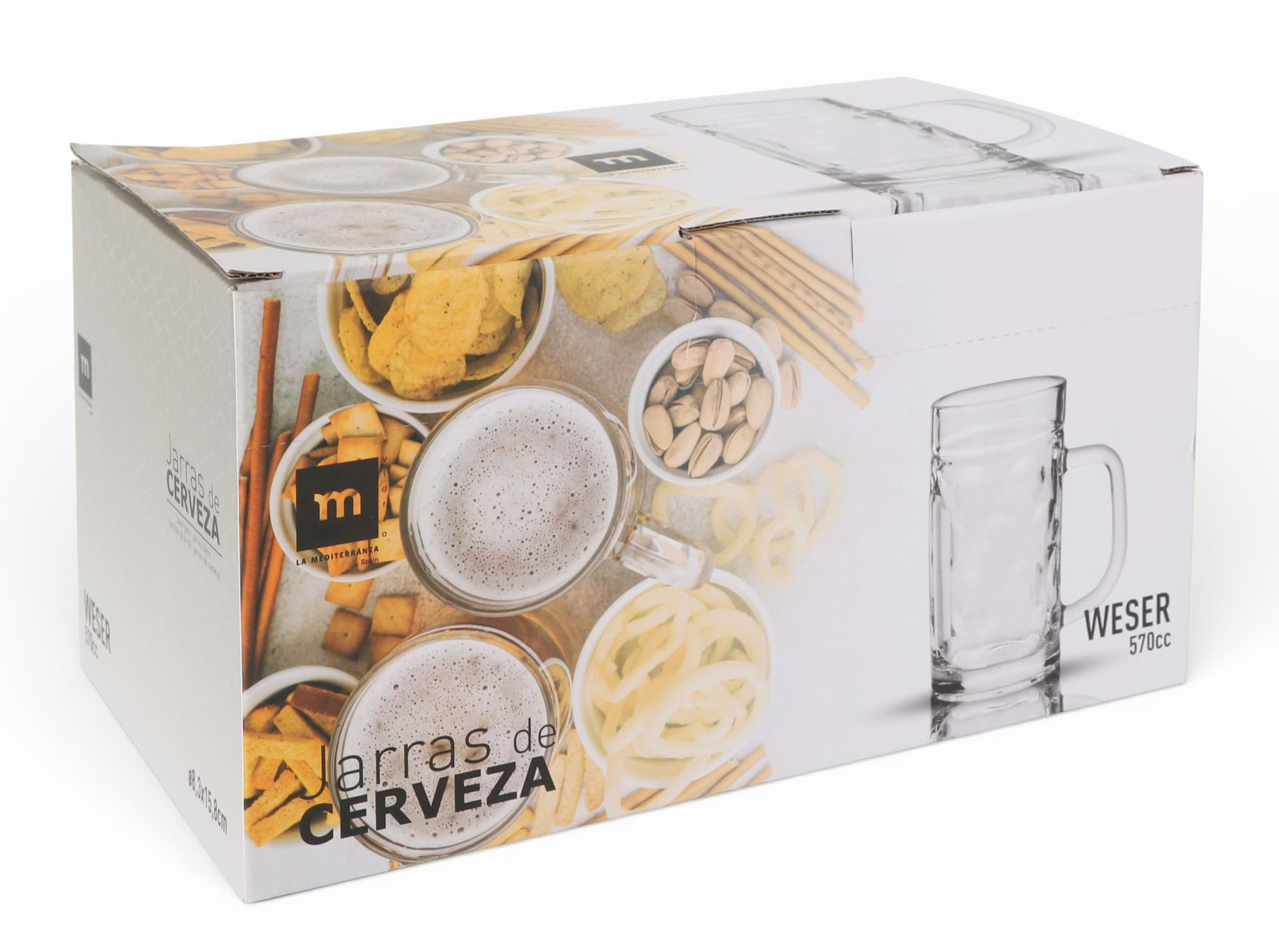 Setul WESER include șase halbe de bere, fiecare având o capacitate de 570 ml. Aceste halbe sunt ideale pentru a servi bere, oferind o experiență autentică și plăcută. Designul clasic al halbelor WESER le face potrivite pentru diverse ocazii, de la întâlniri casual cu prietenii până la evenimente festive.