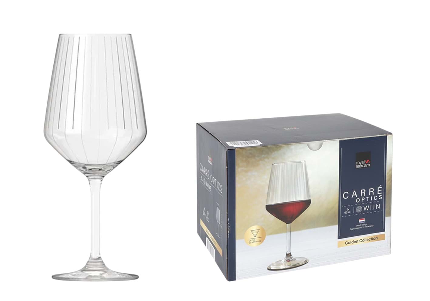 Setul de 6 pahare de vin premium din colecția Carre Optics Golden Collection de la Royal Leerdam este conceput pentru a aduce un plus de stil și eleganță oricărei mese. Fiecare pahar are o capacitate generoasă de 650 ml, perfectă pentru a savura vinuri roșii corpolente, vinuri albe aromate sau chiar rosé-uri delicate. Designul optic Carre, combinat cu detaliile aurii, oferă o estetică sofisticată, transformând fiecare ocazie într-un eveniment special.
