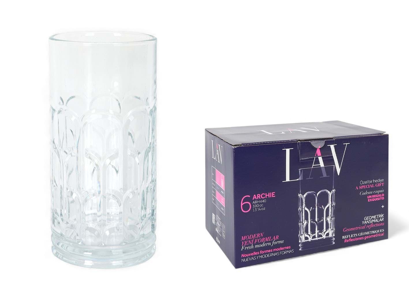 Setul de 6 pahare LAV ARCHIE aduce un plus de rafinament meselor tale. Cu o capacitate de 390 ml, aceste pahare înalte sunt ideale pentru servirea unei varietăți largi de băuturi, de la apă și suc, până la cocktailuri elaborate. Forma lor elegantă și simplă se integrează perfect în orice decor, transformând fiecare ocazie într-un moment special. Fabricate din sticlă de calitate superioară, paharele ARCHIE sunt rezistente și ușor de întreținut, fiind potrivite pentru utilizarea zilnică, dar și pentru evenimente festive. Bucură-te de experiența unei mese desăvârșite cu acest set de pahare care îmbină funcționalitatea cu estetica.