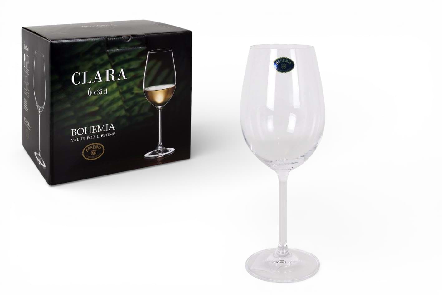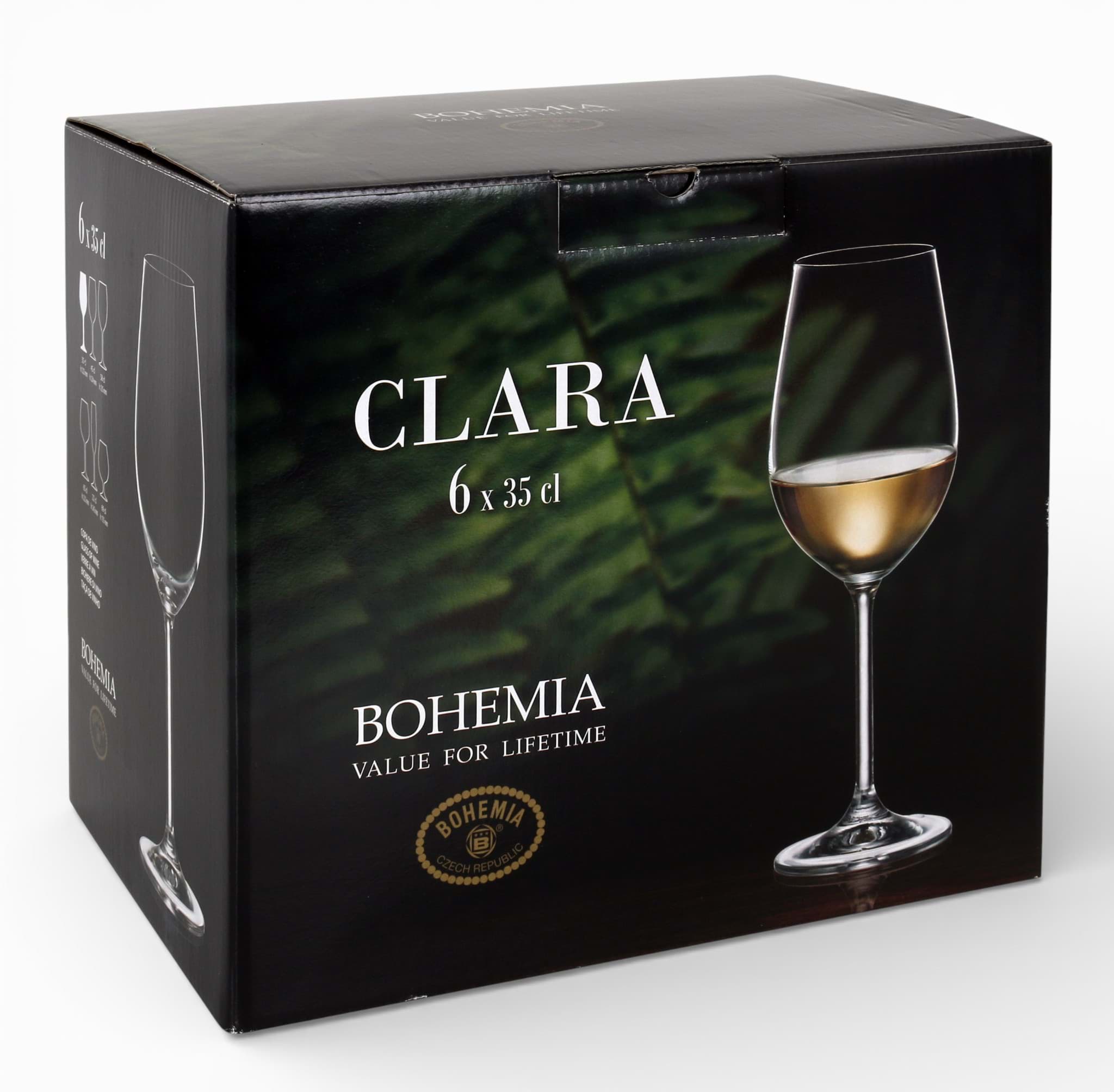 Setul de 6 pahare pentru vin Bohemia CLARA, cu o capacitate de 350 ml, aduce un plus de eleganță oricărei mese festive sau cine romantice. Designul clasic al paharelor, realizat din cristal de Bohemia de înaltă calitate, asigură o experiență vizuală deosebită. Forma paharelor este concepută pentru a concentra aromele vinului, îmbunătățind astfel experiența gustativă. Fiecare pahar este finisat cu atenție, reflectând tradiția și măiestria brandului Bohemia.