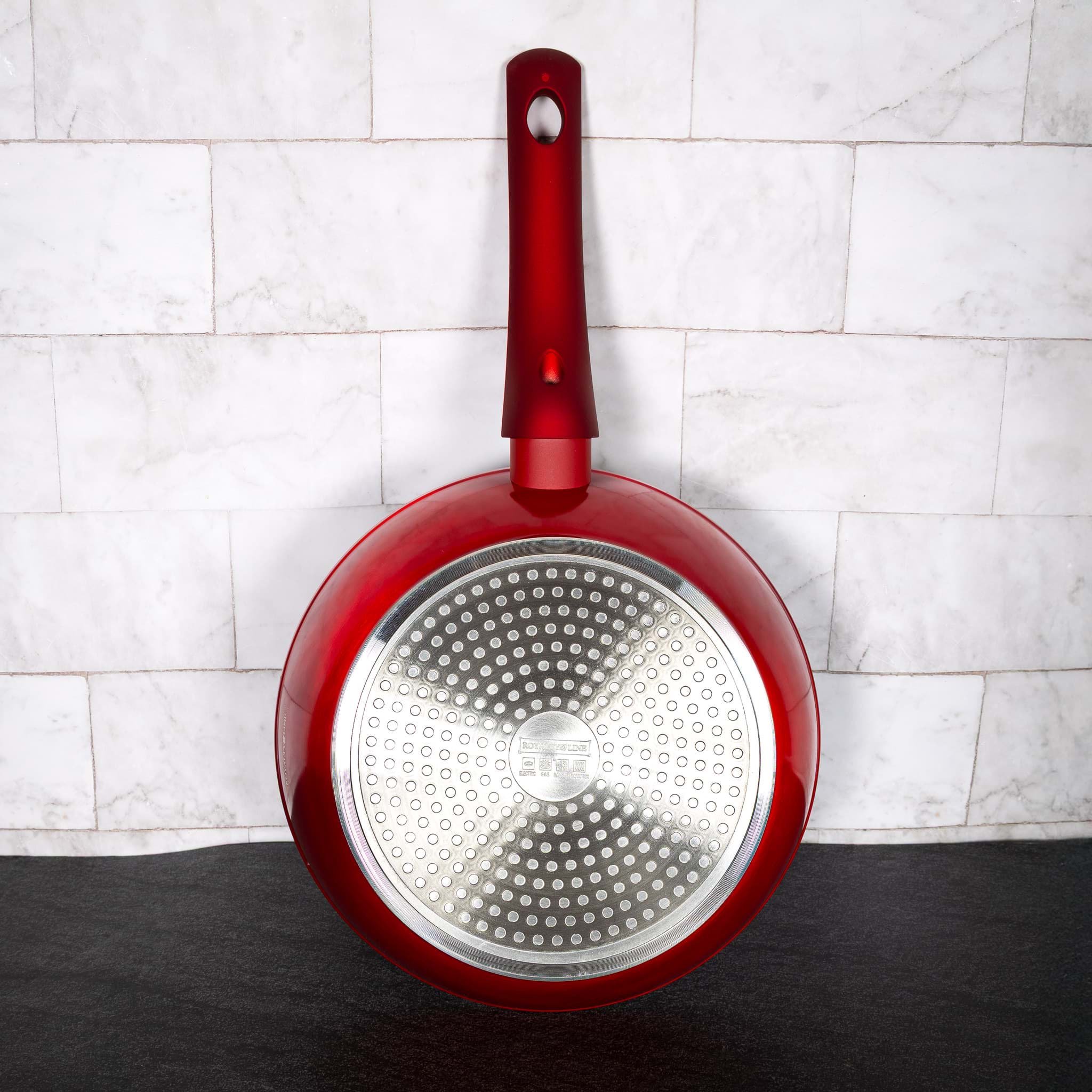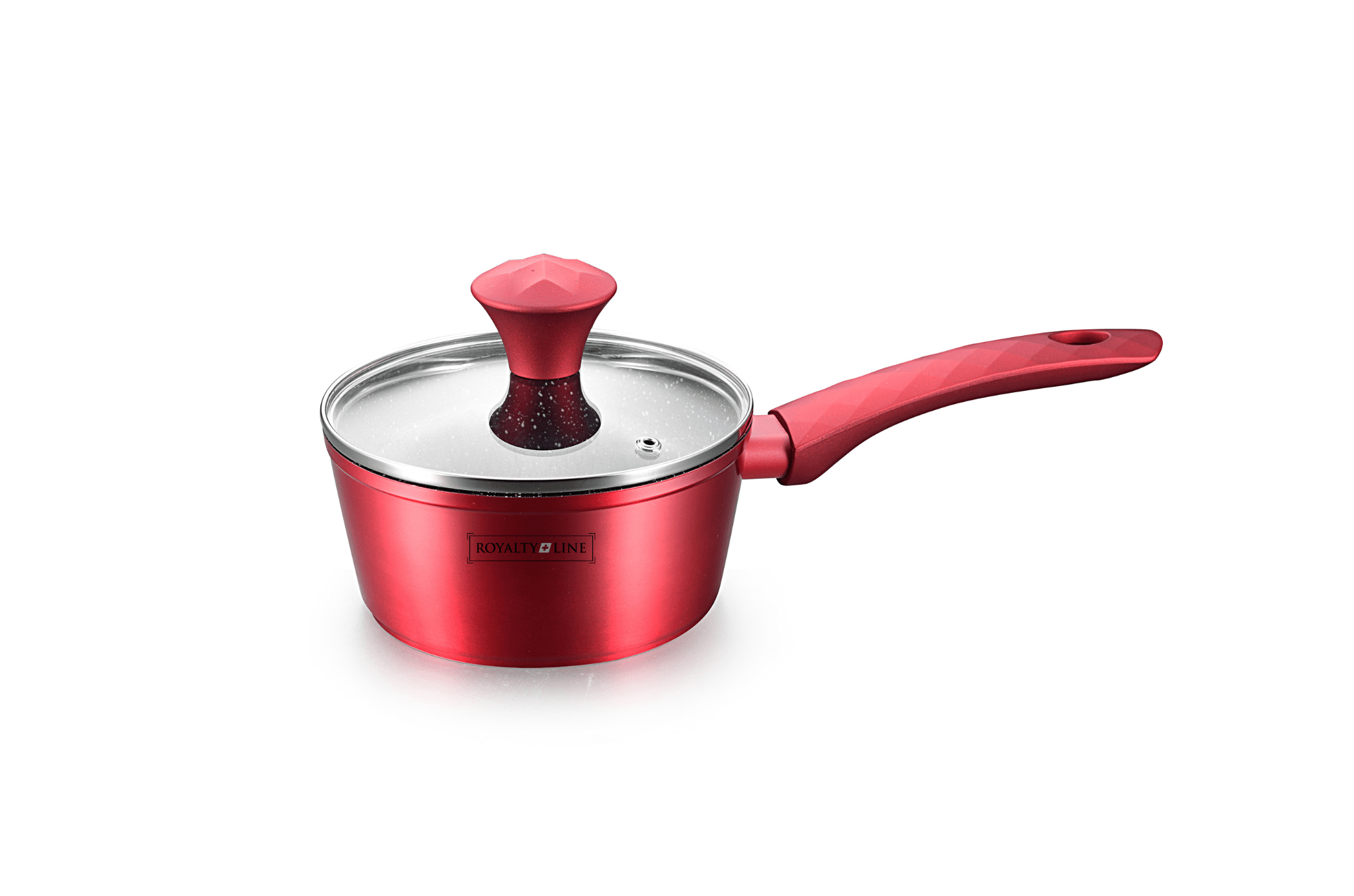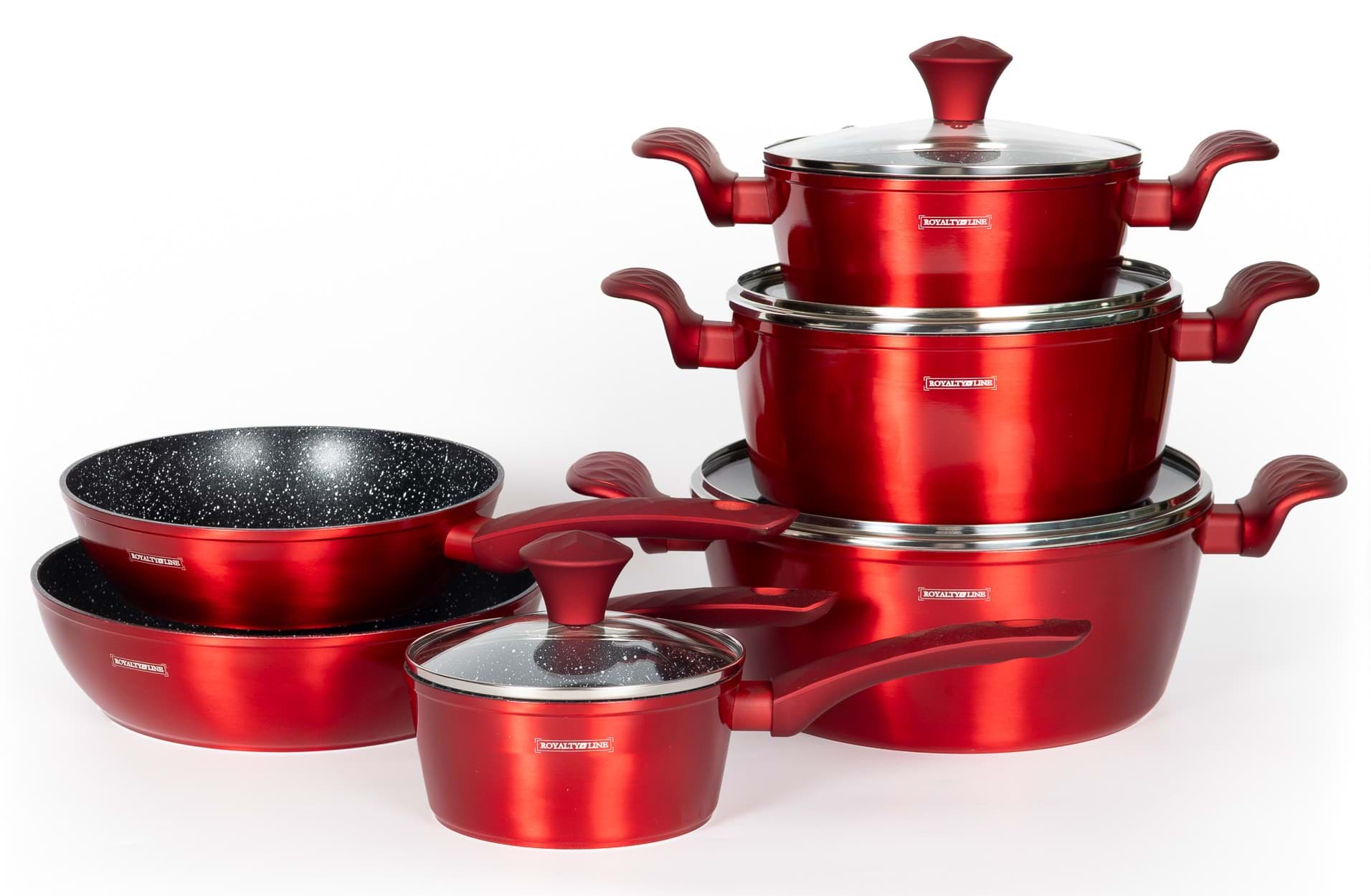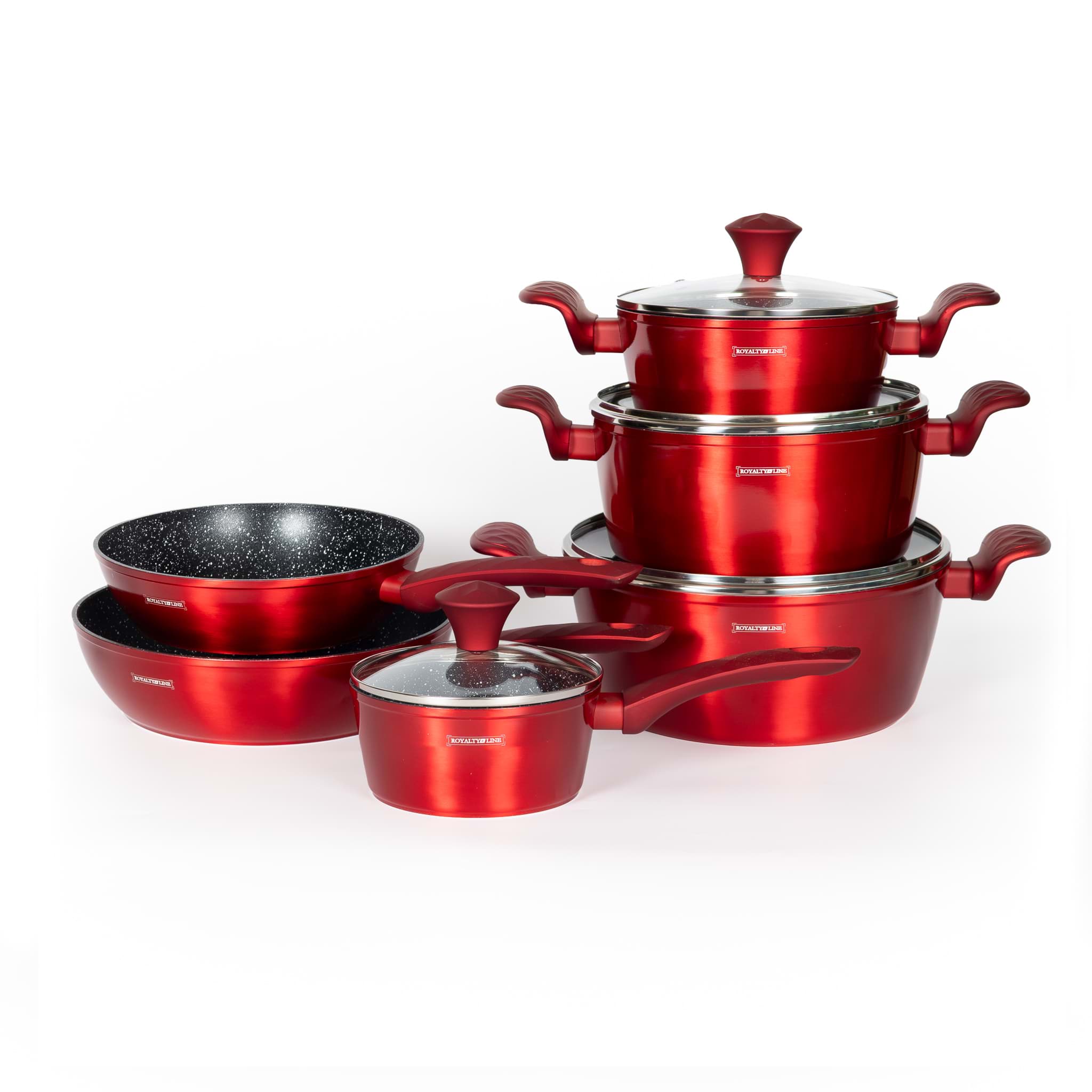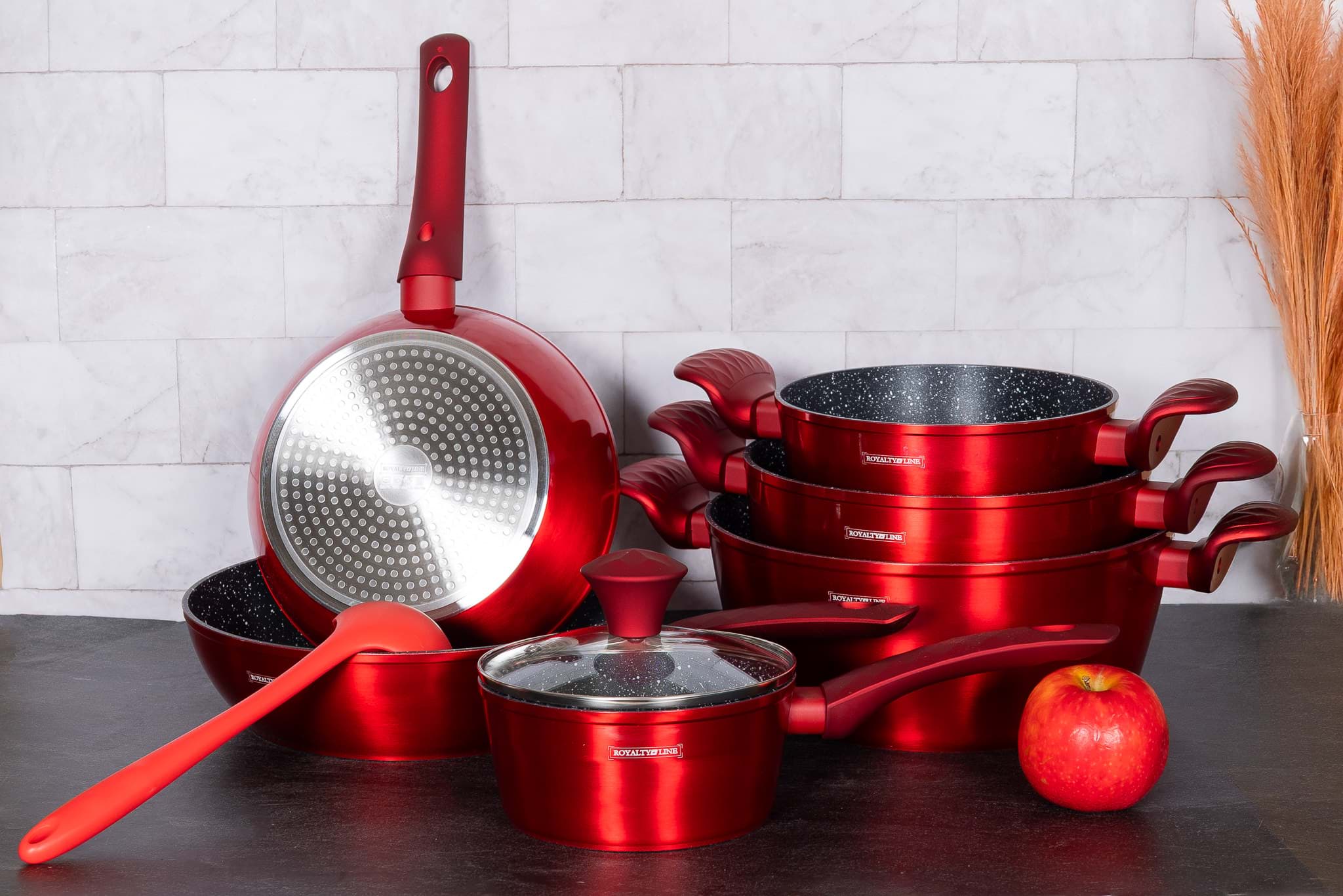 Setul de vase de gătit Royalty Line FD10, compus din 10 piese, este alegerea ideală pentru orice bucătar, de la începător la expert. Acesta combină funcționalitatea cu un design elegant, aducând un plus de stil în bucătăria ta. Învelișul antiaderent tip marmură permite prepararea alimentelor cu mai puțin ulei, asigurând o gătire sănătoasă și o curățare extrem de ușoară. Culoarea roșu metalic vibrant adaugă un aspect modern și atrăgător, transformând gătitul într-o experiență plăcută. Setul include o varietate de dimensiuni de oale și tigăi, fiecare dotată cu capace rezistente, oferindu-ți flexibilitate pentru a pregăti orice fel de mâncare, de la supe și sosuri, până la fripturi și legume sotate.