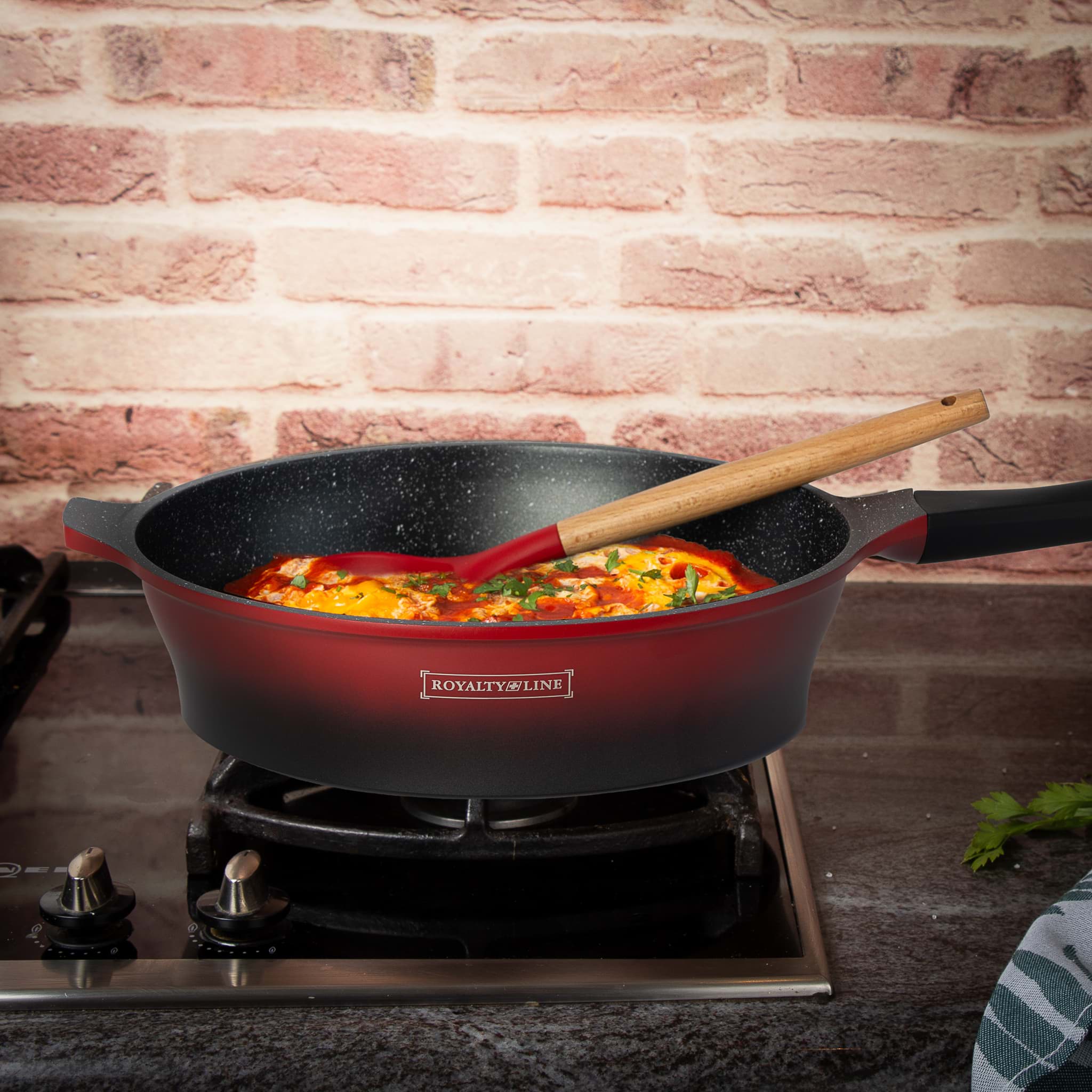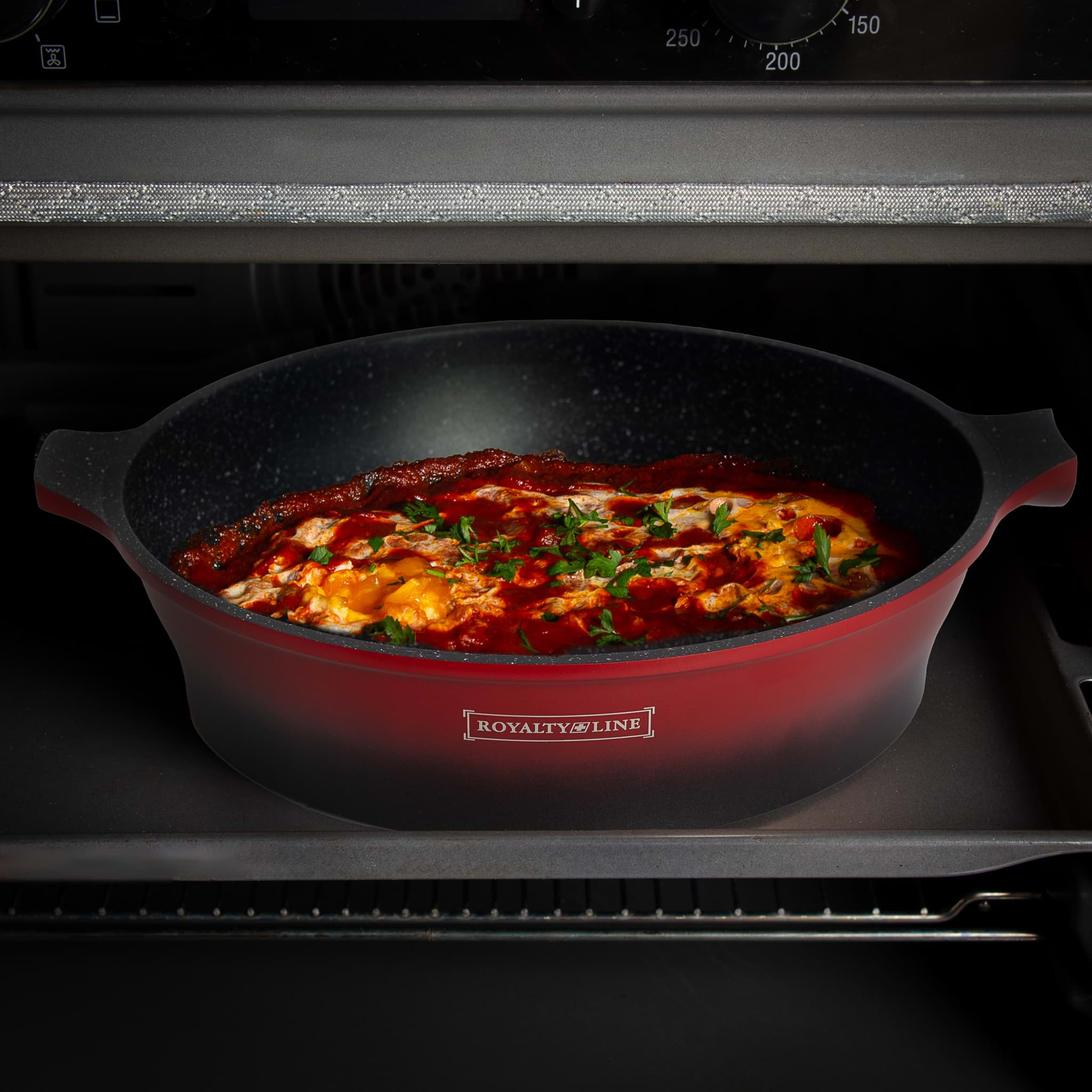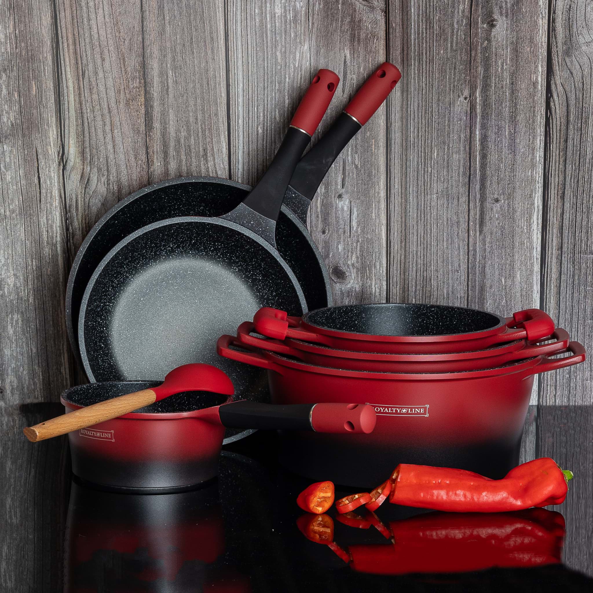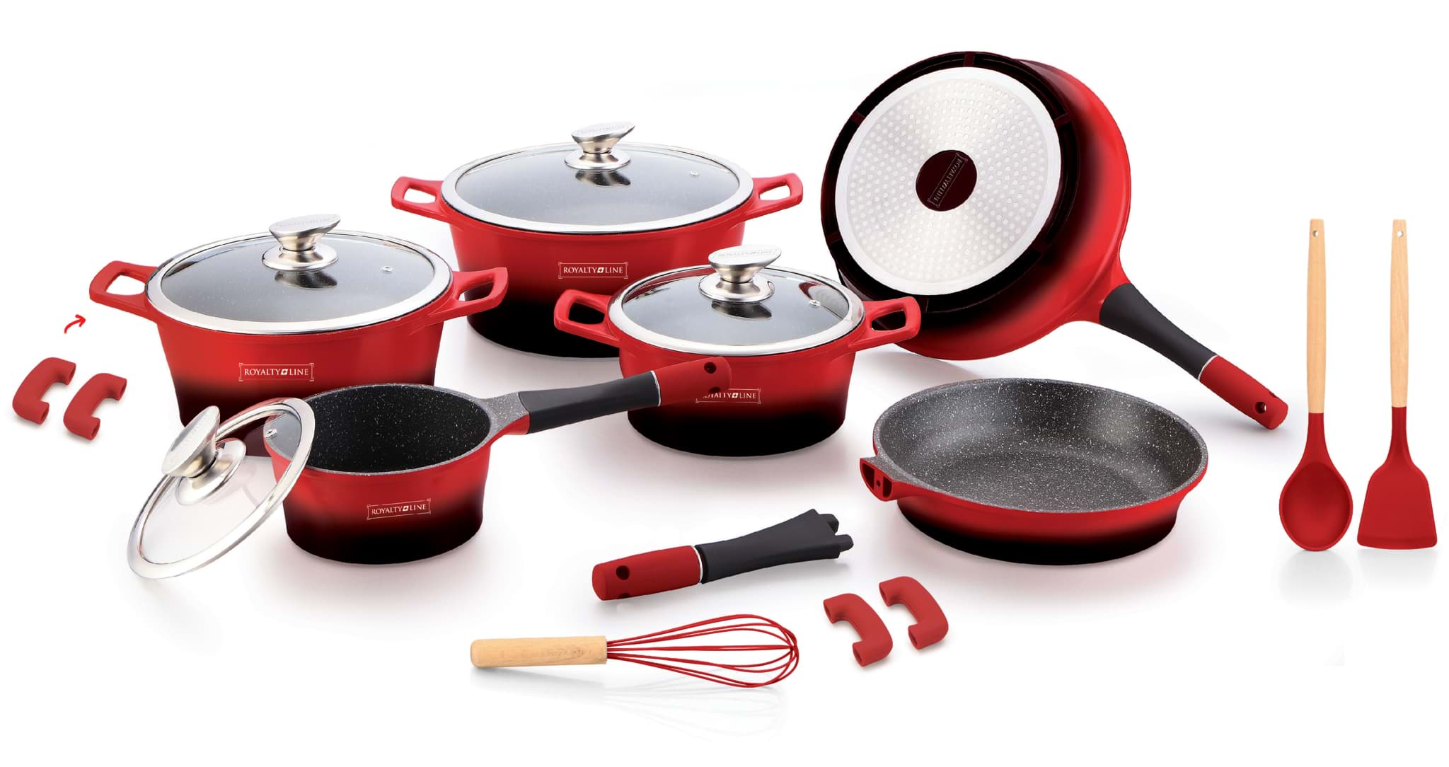 Setul de vase de gătit Royalty Line ES1014M este alegerea ideală pentru oricine dorește să combine funcționalitatea cu un design atractiv în bucătărie. Cuprinzând 17 piese esențiale, acest set oferă tot ce ai nevoie pentru a pregăti o varietate largă de rețete, de la preparate simple de zi cu zi până la cine festive elaborate. Combinația elegantă de roșu și negru adaugă o notă de stil modern oricărei bucătării, transformând gătitul într-o experiență plăcută și vizuală.