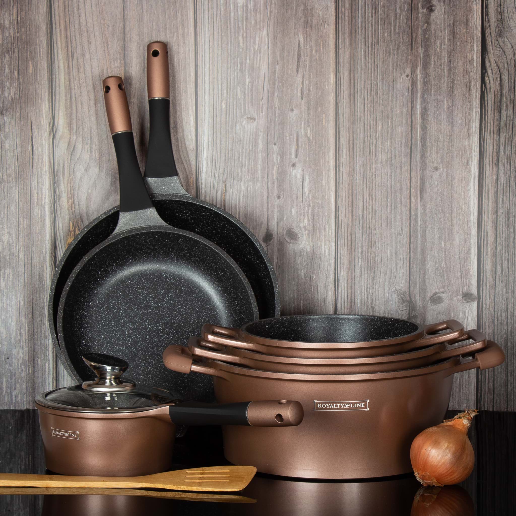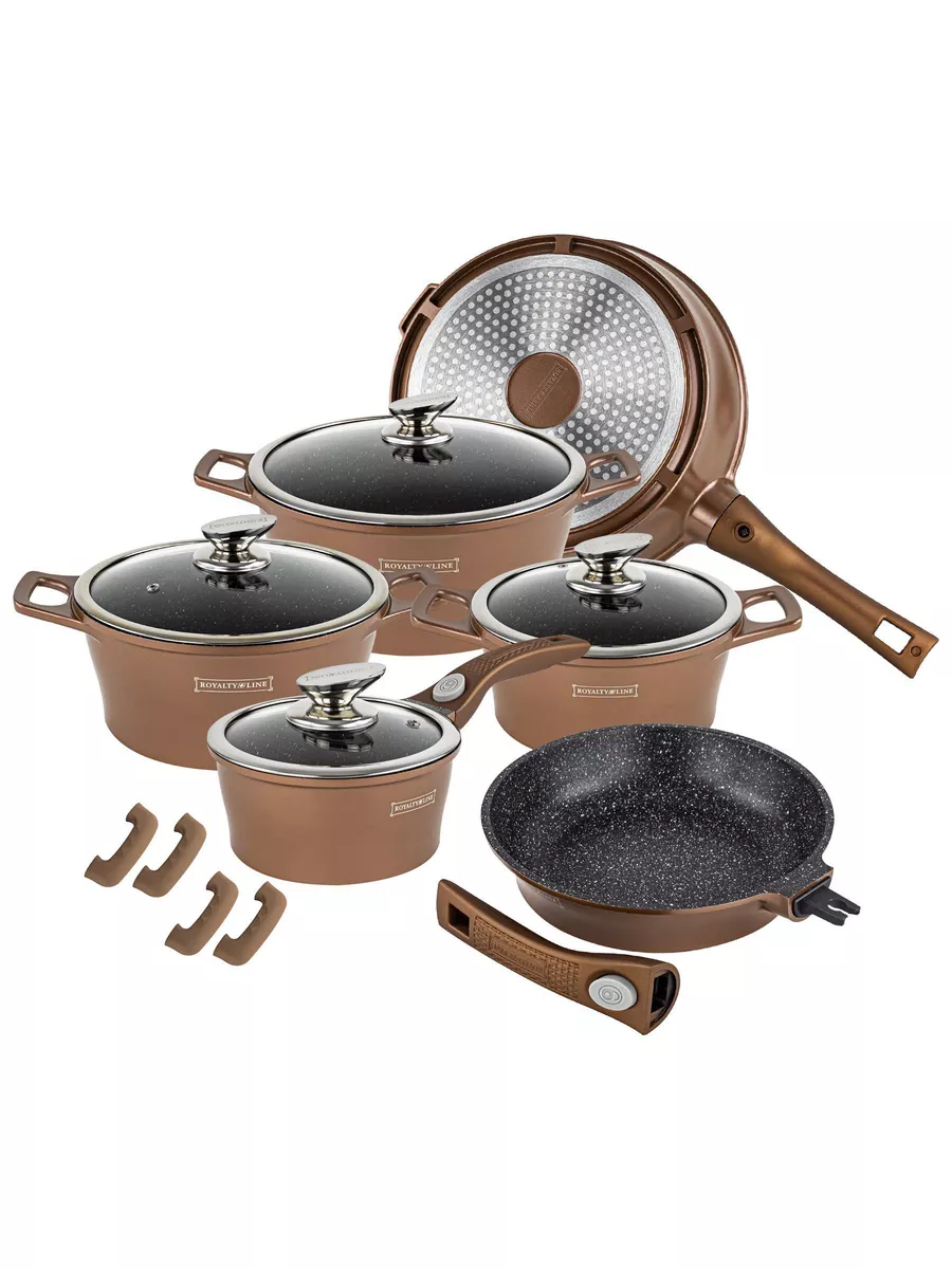 Set de vase de gătit, 13 piese, antiaderente cu înveliș tip marmură, culoare cupru, Royalty Line – BS1010M