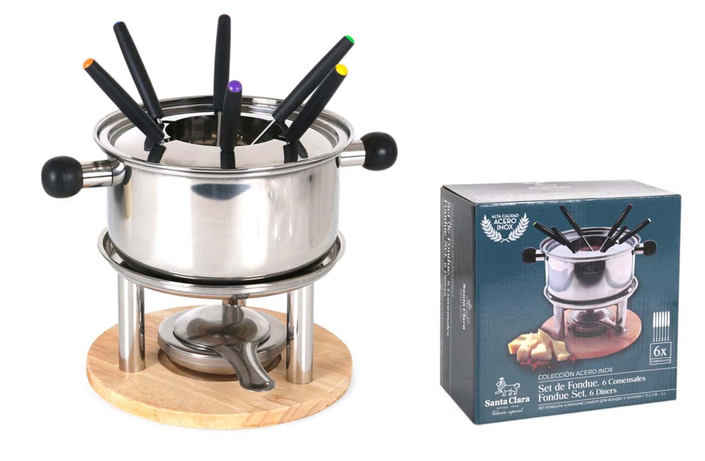 Setul include toate elementele esențiale pentru o experiență fondue completă: un vas din oțel inoxidabil, un suport stabil, arzător pentru combustibil (pasta de ardere) și 6 furculițe cu mânere izolate termic, marcate cu culori diferite pentru a evita confuziile. Designul elegant și funcționalitatea practică fac din acest set un accesoriu indispensabil pentru orice bucătărie și un cadou ideal pentru pasionații de gastronomie.