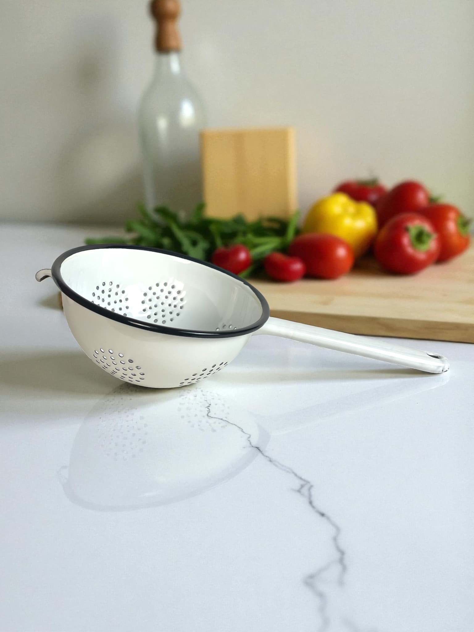 Strecurătoarea emailată cu mâner lung este un instrument esențial în orice bucătărie, combinând funcționalitatea cu un design clasic. Fabricată dintr-un material rezistent, acoperit cu email, aceasta garantează o utilizare îndelungată, rezistând coroziunii și uzurii zilnice. Mânerul lung oferă o prindere sigură și confortabilă, permițând strecurarea lichidelor fierbinți sau a alimentelor gătite cu ușurință și siguranță. Aspectul său tradițional aduce un plus de farmec bucătăriei, amintind de ustensilele folosite de generațiile anterioare.