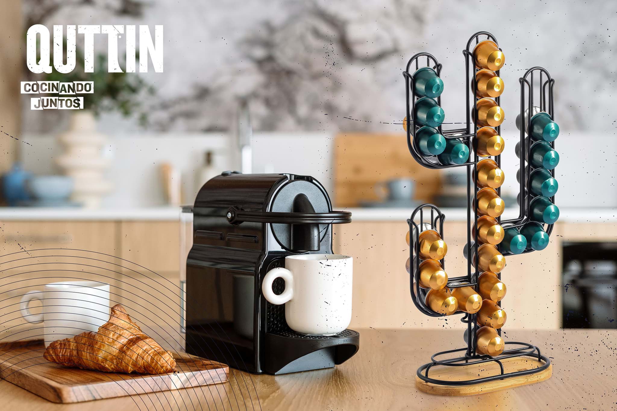 Acest suport metalic Quttin, cu forma sa de cactus, adaugă un plus de originalitate și stil bucătăriei tale. Este un accesoriu practic și decorativ, ideal pentru iubitorii de cafea care apreciază detaliile inedite. Designul său atrăgător îl transformă într-un punct focal, aducând un strop de verde și prospețime în spațiul dedicat preparării cafelei. Materialul metalic asigură durabilitate și stabilitate, menținând capsulele de cafea organizate și ușor accesibile.