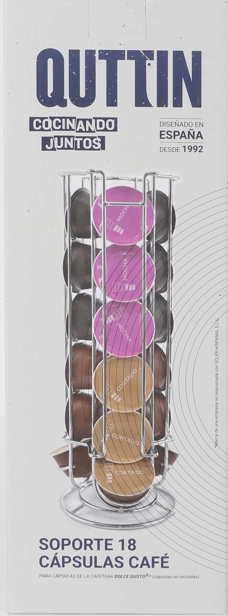 Acest suport Quttin este proiectat special pentru a depozita până la 18 capsule de cafea de dimensiuni mari, compatibile cu sistemul Dolce Gusto. Astfel, ai la îndemână o selecție variată de arome, perfect organizate și ușor accesibile, economisind spațiu prețios pe blatul de lucru sau în dulapul de bucătărie.