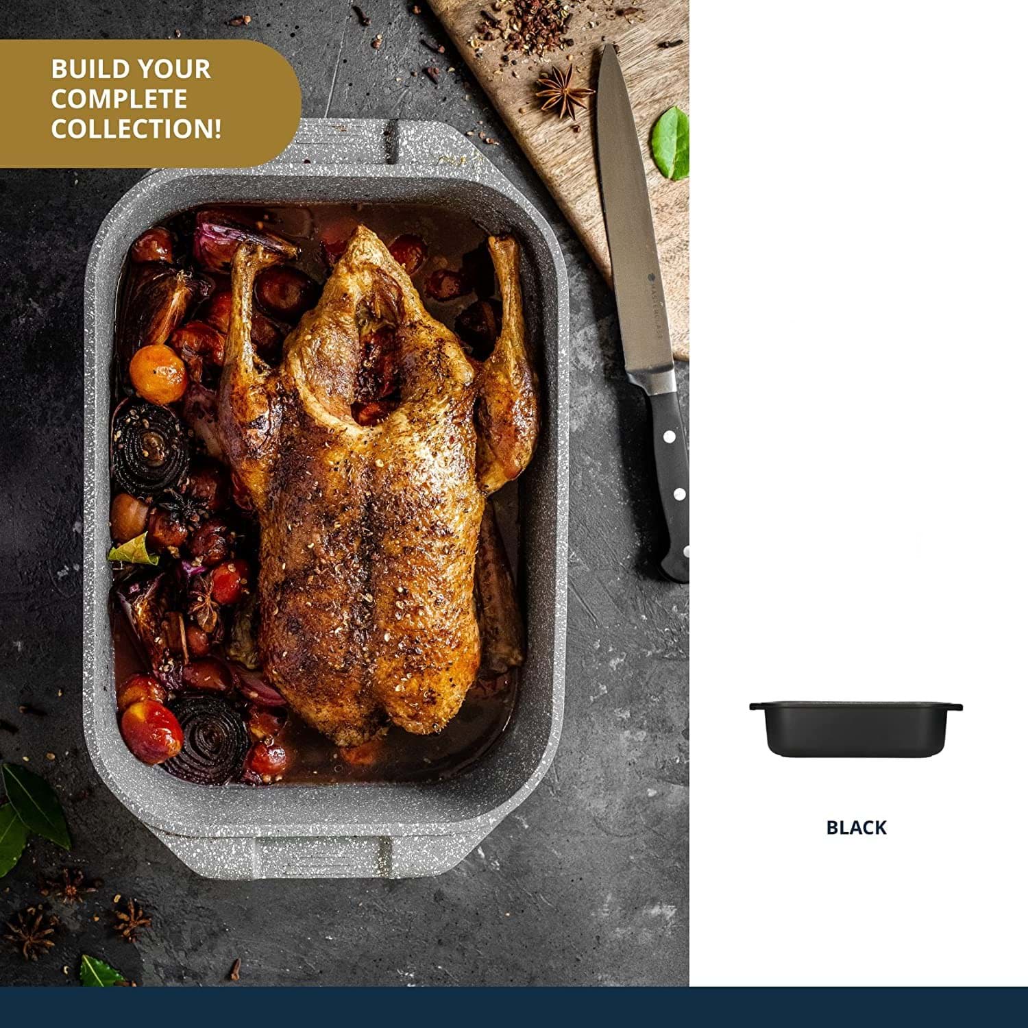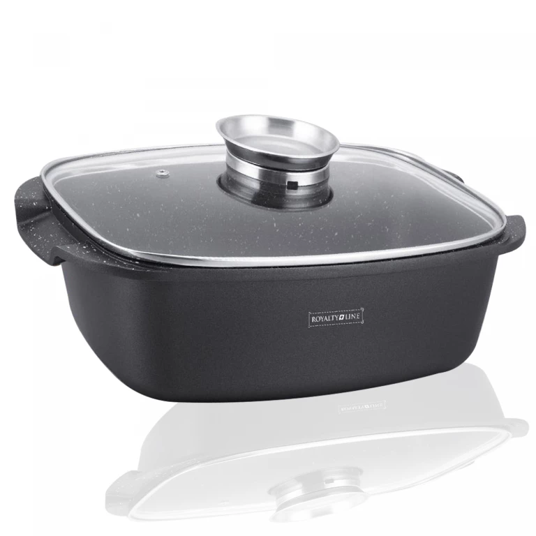 Învelișul tip marmură nu numai că oferă un aspect elegant, dar și funcționează ca o suprafață antiaderentă de înaltă calitate. Acest înveliș previne lipirea alimentelor, facilitând curățarea tăvii după utilizare. De asemenea, permite utilizarea unei cantități reduse de ulei sau grăsime în timpul gătitului, contribuind la prepararea unor mese mai sănătoase. Designul robust și materialele de calitate superioară garantează o utilizare îndelungată și o rezistență sporită la zgârieturi și uzură.