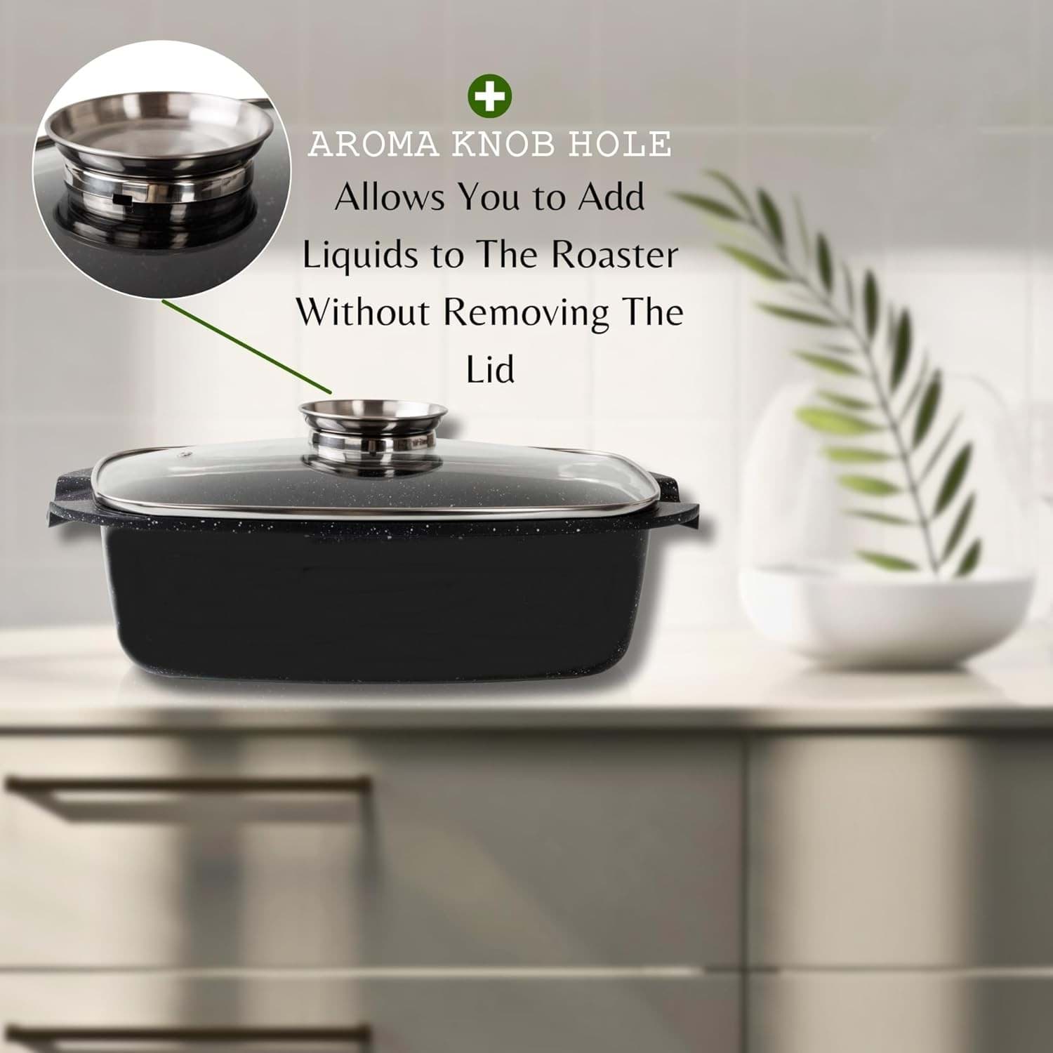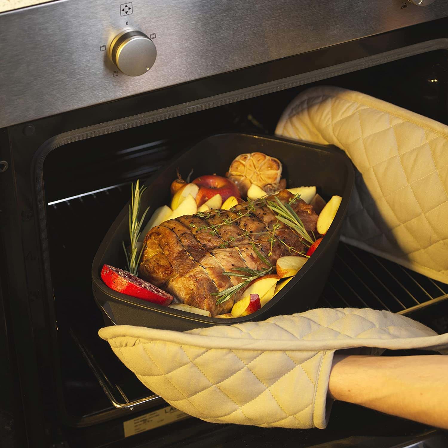 Această tavă de copt/rosting ACR32M este fabricată din aluminiu turnat, un material recunoscut pentru distribuția uniformă a căldurii și durabilitatea sa. Aluminiul turnat asigură o încălzire rapidă și uniformă a alimentelor, evitând punctele fierbinți și contribuind la o gătire optimă. Dimensiunea de 32 cm o face ideală pentru prepararea unei varietăți de feluri de mâncare, de la fripturi suculente la legume rumenite perfect.