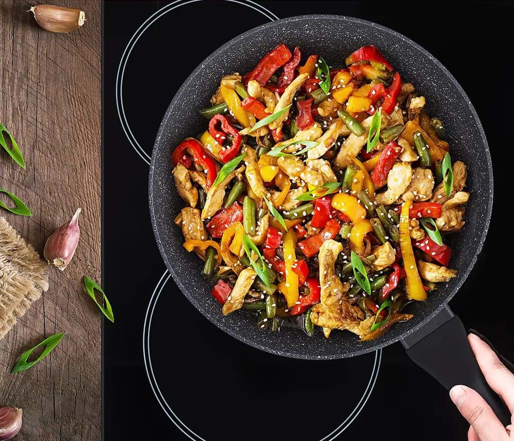 Modelul RL-FWN de la Royalty Line este realizat pentru a rezista utilizării frecvente. Construcția sa robustă asigură o distribuție uniformă a căldurii pe întreaga suprafață de gătit, eliminând punctele fierbinți și garantând o gătire consistentă a alimentelor. Mânerul ergonomic oferă o prindere sigură și confortabilă, facilitând manevrarea tigăii chiar și atunci când este plină. Designul wok-ului este ideal pentru a sota, a prăji rapid și a prepara o varietate de rețete asiatice și internaționale.